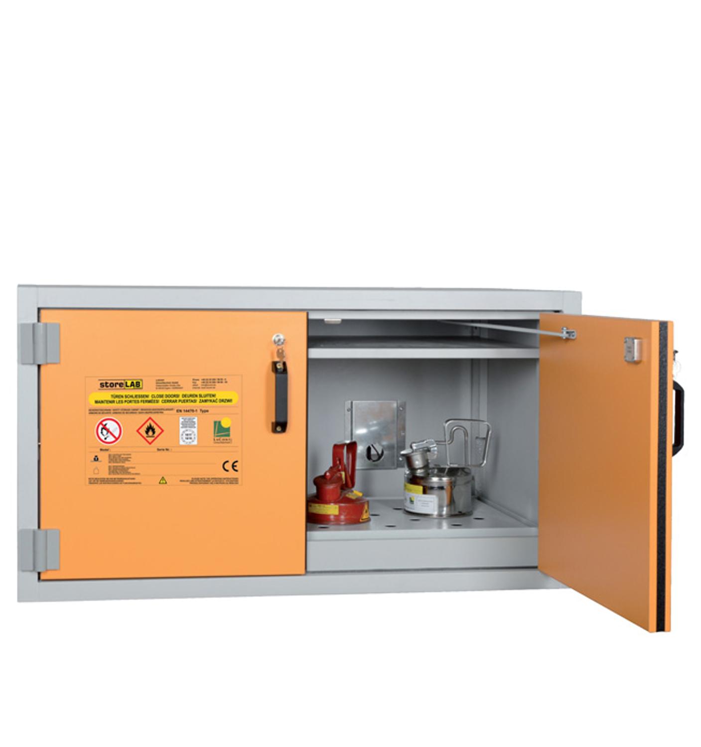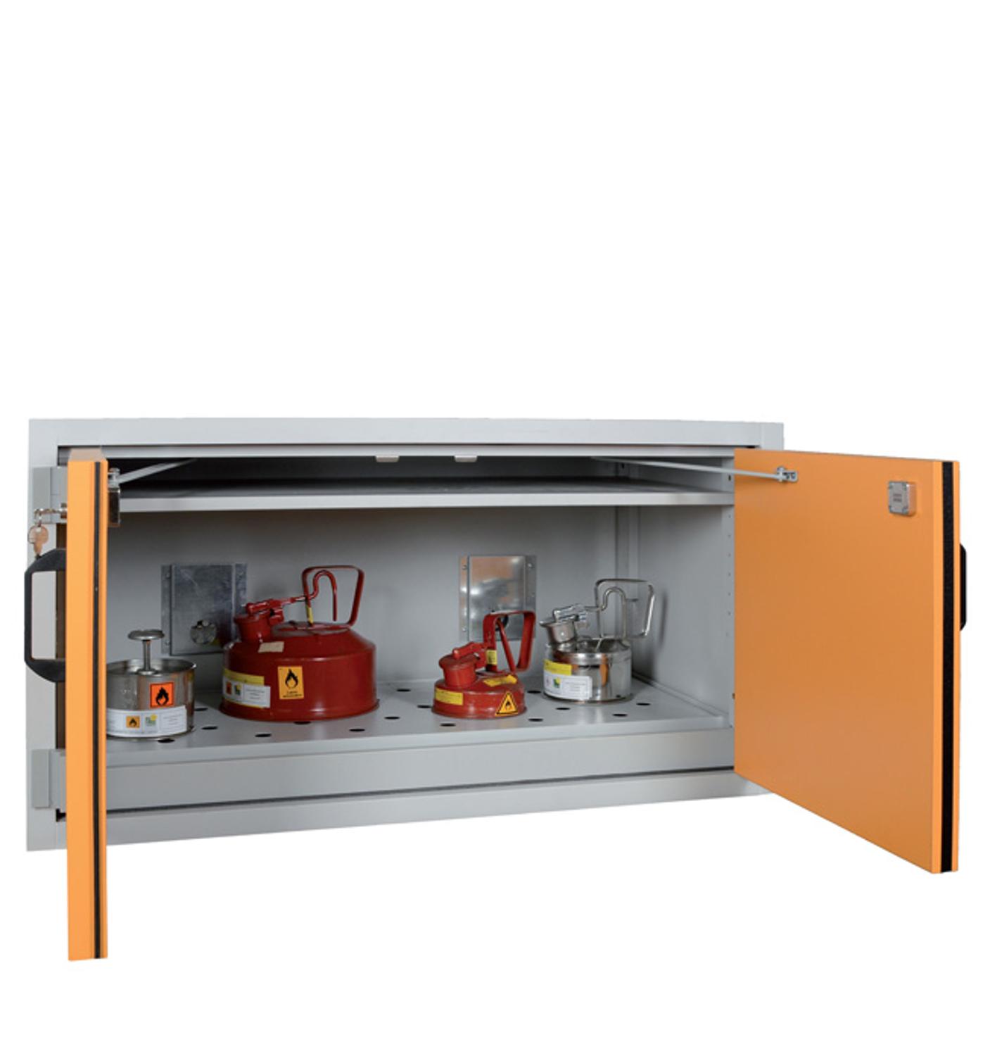 De brandwerende onderbouwkast AUS 30 / 1100 FT is speciaal ontwikkeld voor de opslag van gevaarlijke stoffen conform de PGS 15. Deze veiligheidskast past perfect onder een werktafel of zuurkast; de juiste oplossing voor werkplekken met beperkte ruimte. Met een brandwerendheid van 30 minuten en een productcertificaat volgens EN 14470-1 voldoet deze brandveilige onderbouwkast aan alle wettelijke normen.