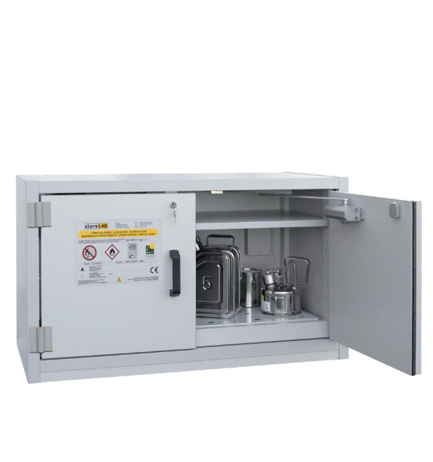 De brandwerende onderbouwkast AUS 30 / 1100 FT is speciaal ontwikkeld voor de opslag van gevaarlijke stoffen conform de PGS 15. Deze veiligheidskast past perfect onder een werktafel of zuurkast; de juiste oplossing voor werkplekken met beperkte ruimte. Met een brandwerendheid van 30 minuten en een productcertificaat volgens EN 14470-1 voldoet deze brandveilige onderbouwkast aan alle wettelijke normen.