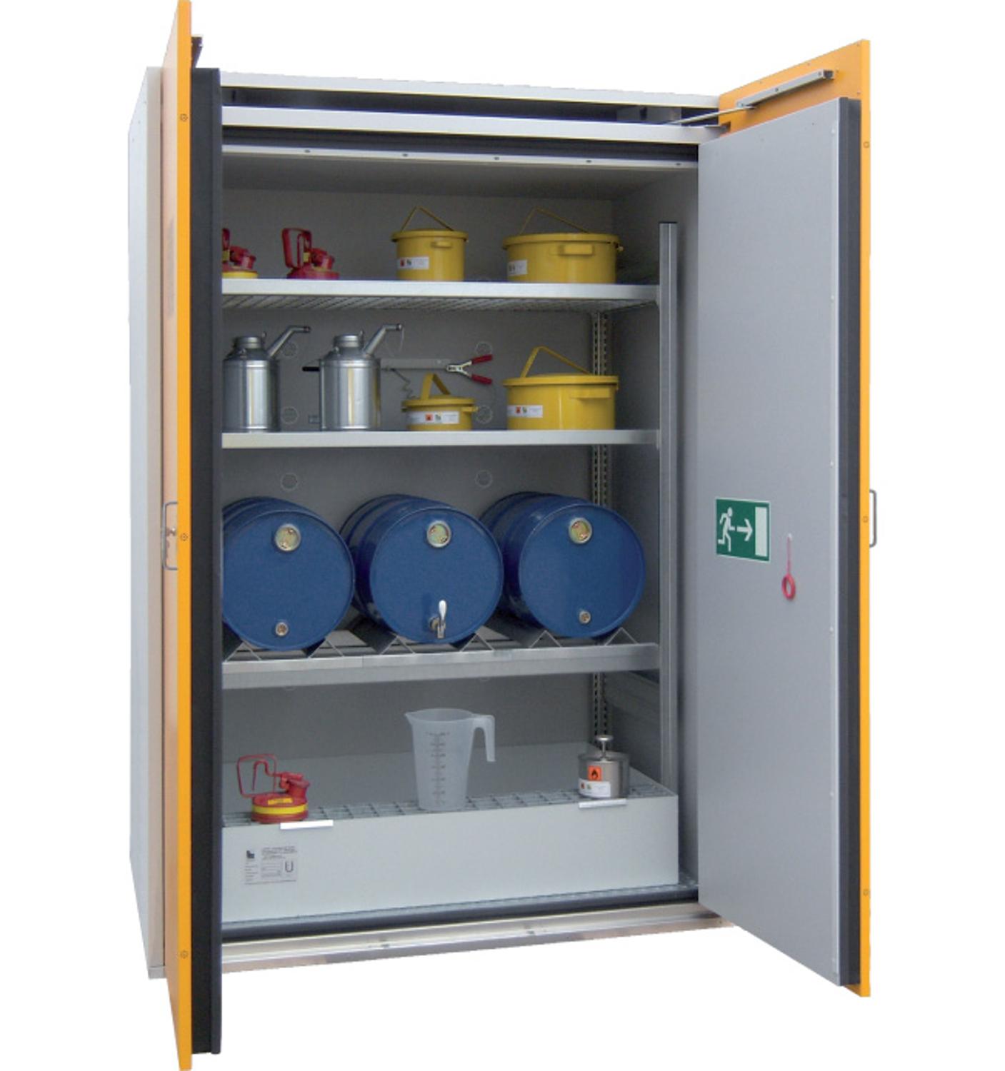 De brandwerende vatenkast SIS-FAS 90 /1550-360 is speciaal ontwikkeld voor de inpandige opslag van gevaarlijke stoffen conform de PGS 15. De vatenkast biedt ruimte voor een opslag van 3 stuks 60 litervaten. Met een brandwerendheid van 90 minuten en een productcertificaat volgens EN 14470-1 voldoet deze brandveilige opslagkast aan alle wettelijke normen.