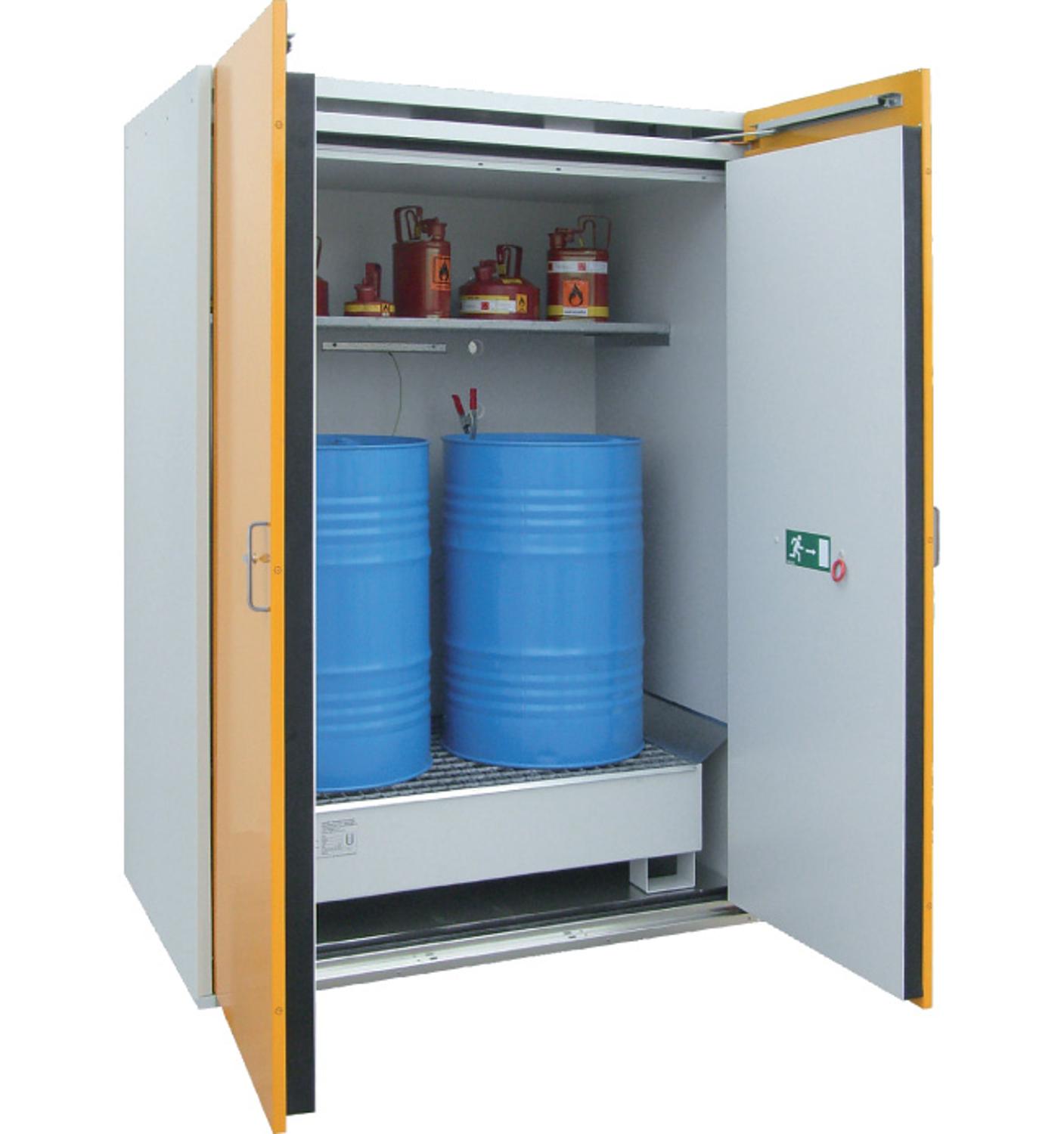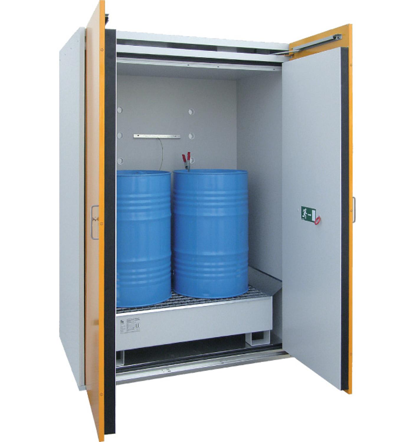 De brandwerende vatenkast SIS-FAS 90 /1550-CW is speciaal ontwikkeld voor de inpandige opslag van gevaarlijke stoffen conform de PGS 15. De vatenkast biedt ruimte voor een opslag van 2 stuks 200 litervaten. Met een brandwerendheid van 90 minuten en een productcertificaat volgens EN 14470-1 voldoet deze brandveilige opslagkast aan alle wettelijke normen.