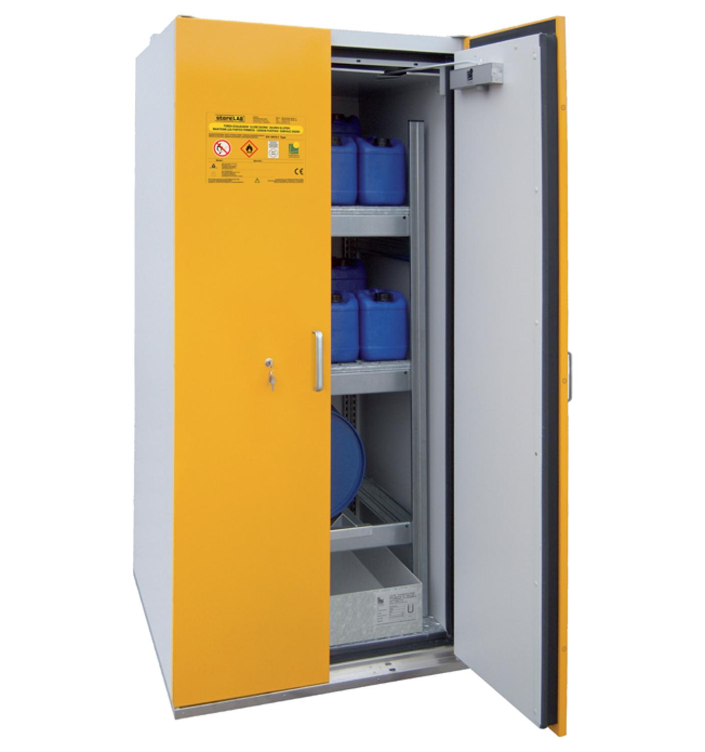 De brandwerende vatenkast SIS-FAS 90 / 900-360 is speciaal ontwikkeld voor de inpandige opslag van gevaarlijke stoffen conform de PGS 15. De vatenkast biedt ruimte voor opslag van 3 stuks 60 litervaten. Met een brandwerendheid van 90 minuten en een productcertificaat volgens EN 14470-1 voldoet deze brandveilige opslagkast aan alle wettelijke normen.