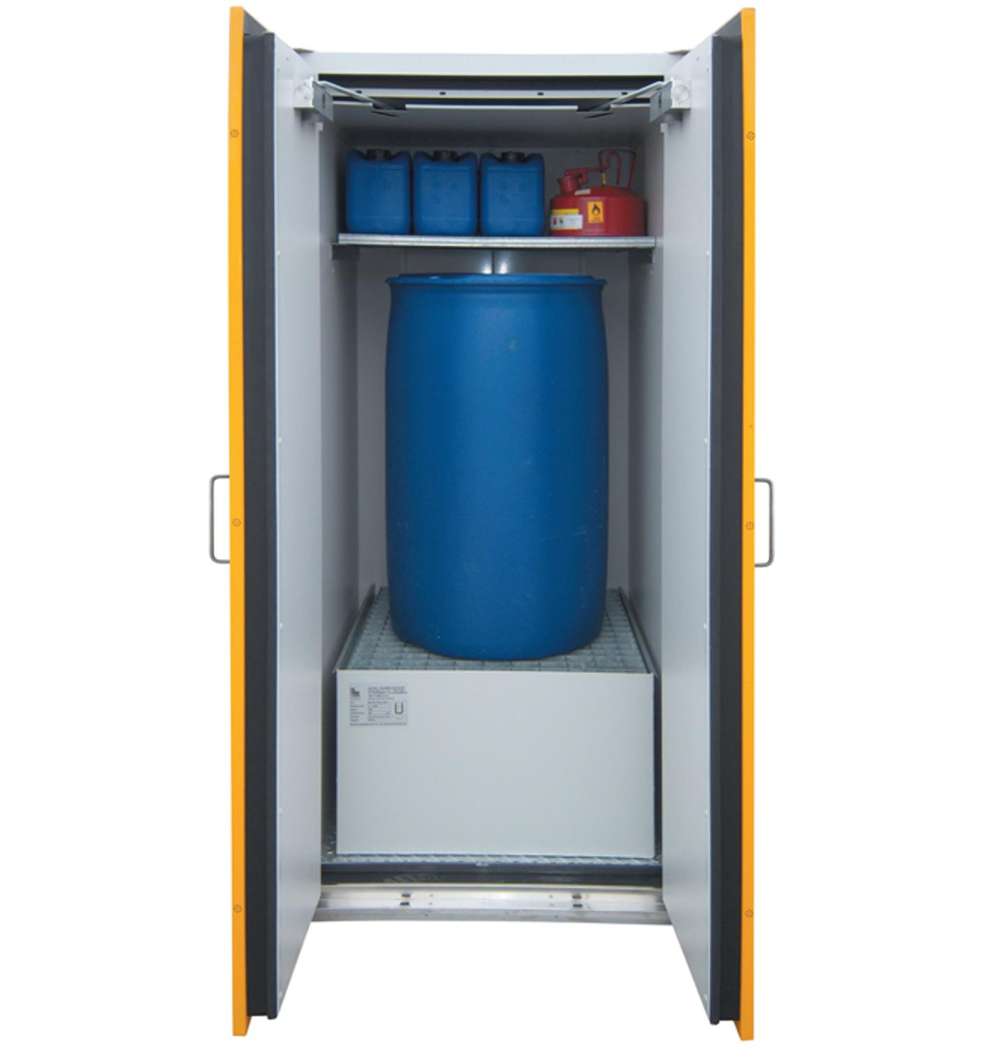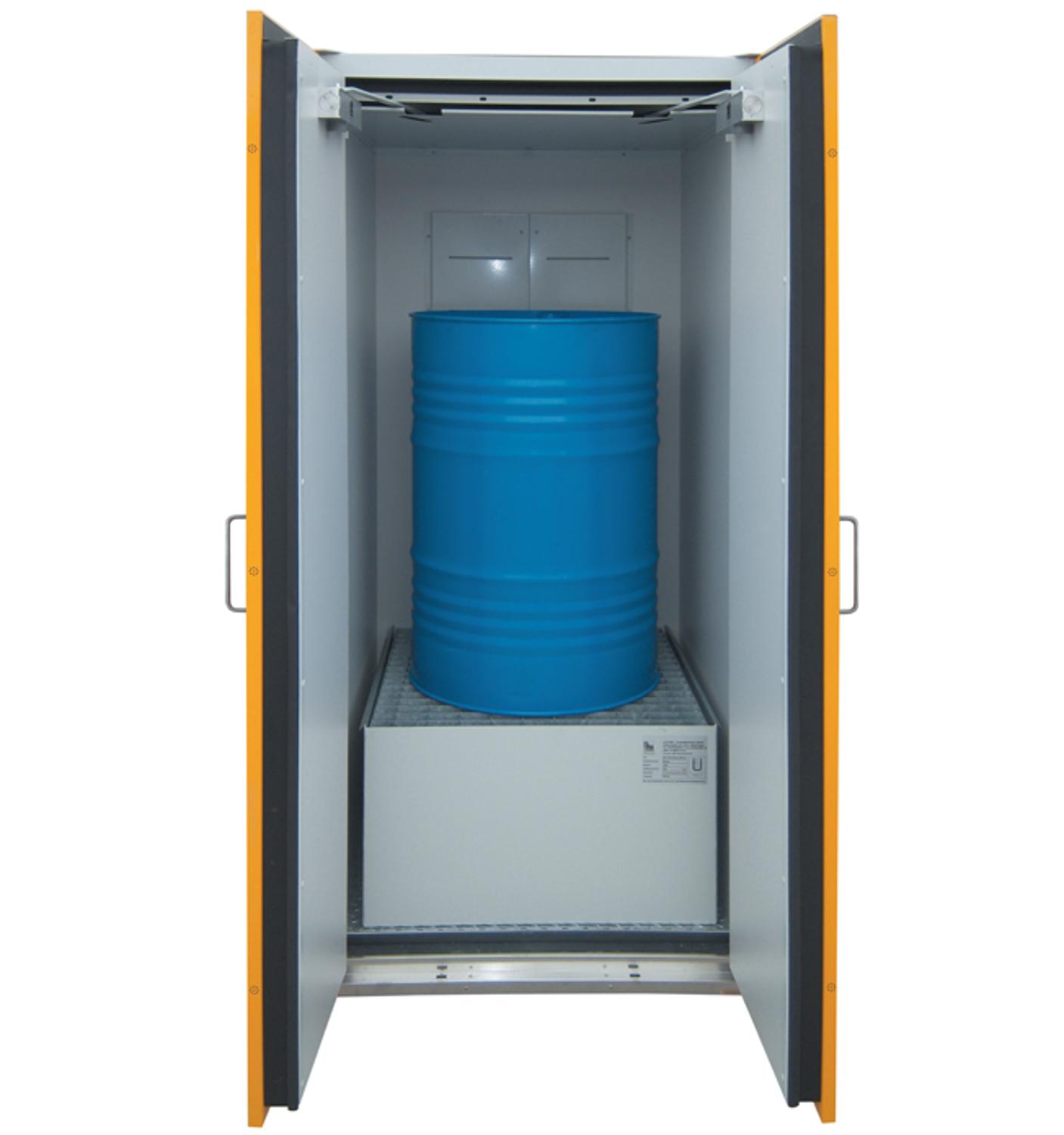De brandwerende vatenkast SIS-FAS 90 / 900-EW is speciaal ontwikkeld voor de inpandige opslag van gevaarlijke stoffen conform de PGS 15. De vatenkast biedt ruimte voor een opslag van 2 stuks 60 litervaten of 1 stuk 200 litervat. Met een brandwerendheid van 90 minuten en een productcertificaat volgens EN 14470-1 voldoet deze brandveilige opslagkast aan alle wettelijke normen.