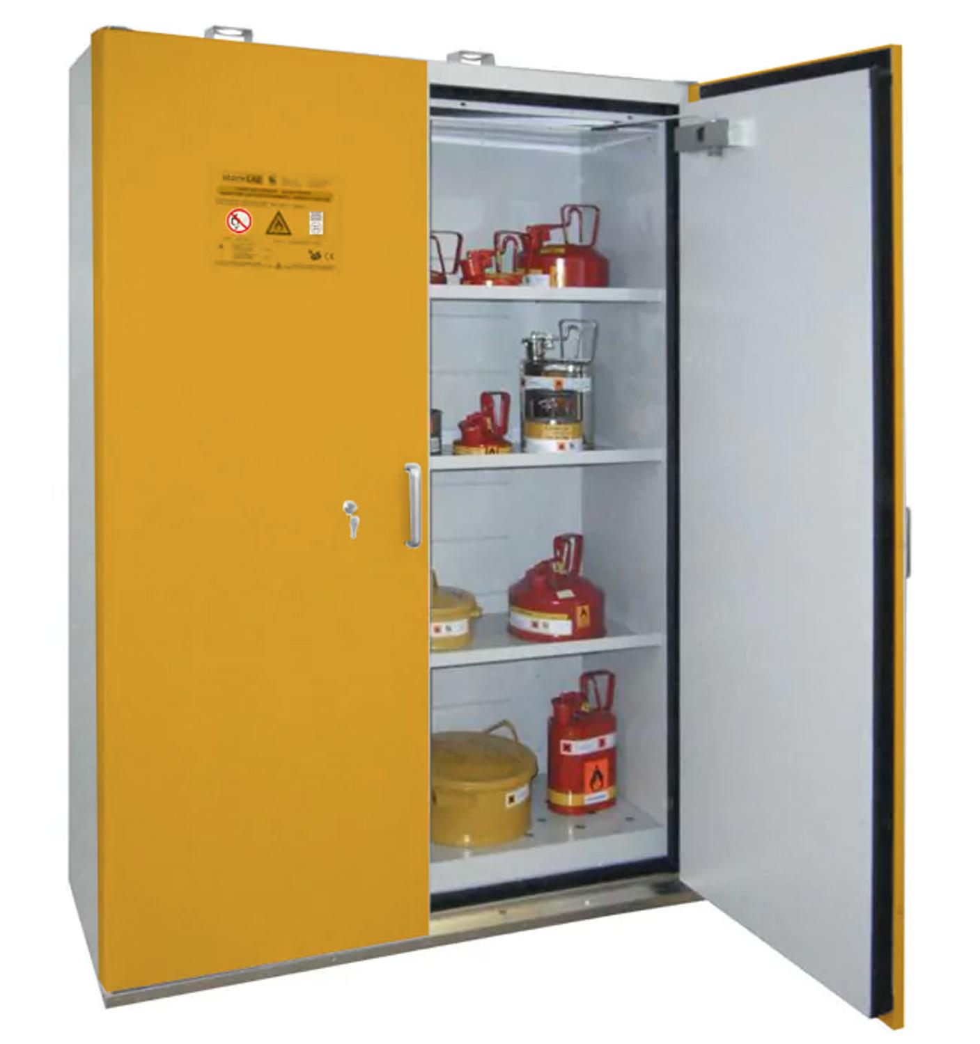 De brandwerende veiligheidskast SIS 90 / 1400 is speciaal ontwikkeld voor de opslag van gevaarlijke stoffen conform de PGS 15. Deze brandwerende opslagkast is speciaal ontwikkeld voor de opslag van grote verpakkingen en maximale hoeveelheden. Met een brandwerendheid van 90 minuten en een productcertificaat volgens EN 14470-1 voldoet deze brandveilige opslagkast aan alle wettelijke normen.
