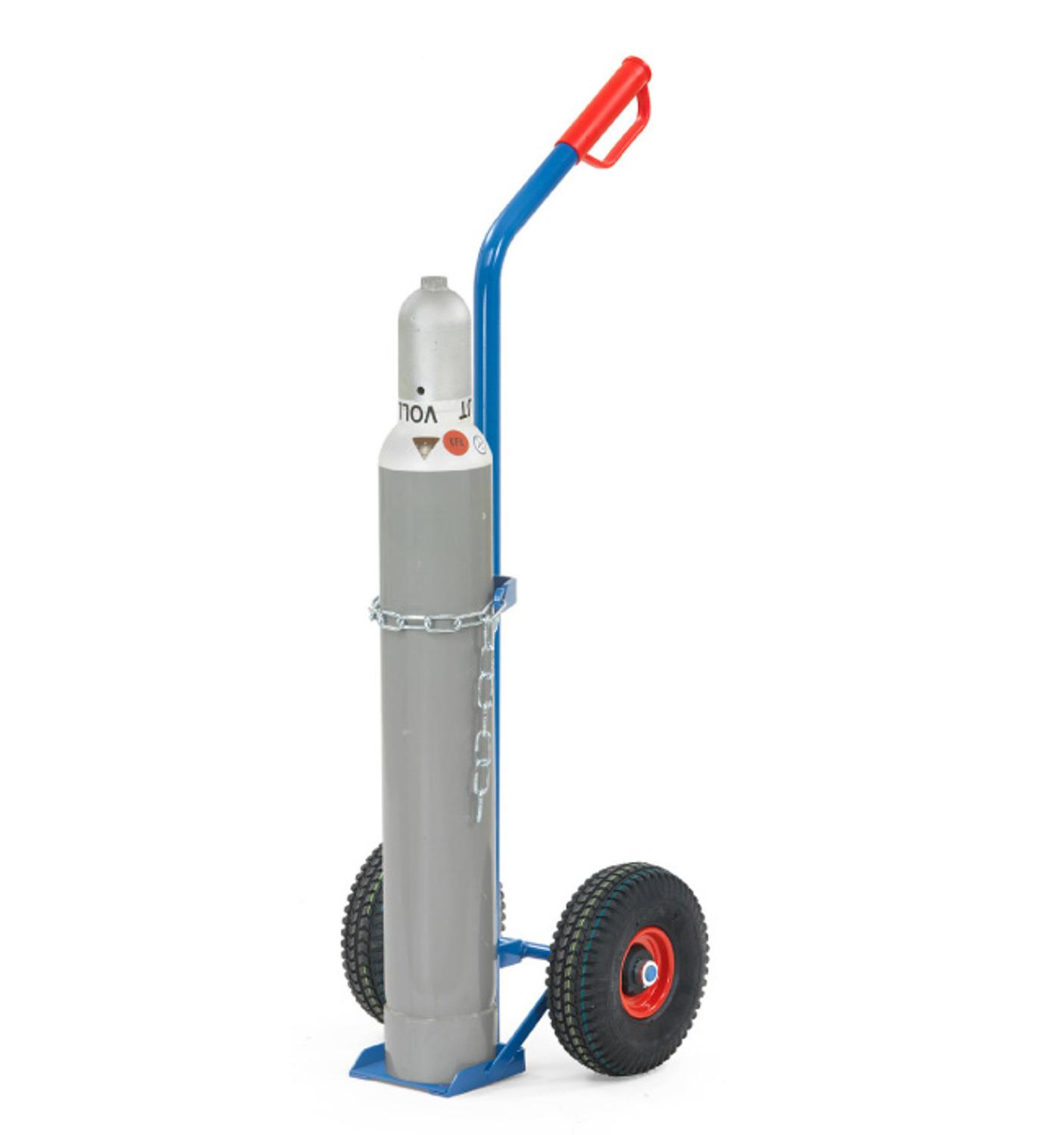 In schone productie-omgevingen adviseren wij luchtbanden vanwege het comfortabele vervoer van de gasfles en het opvangen van oneffenheden.