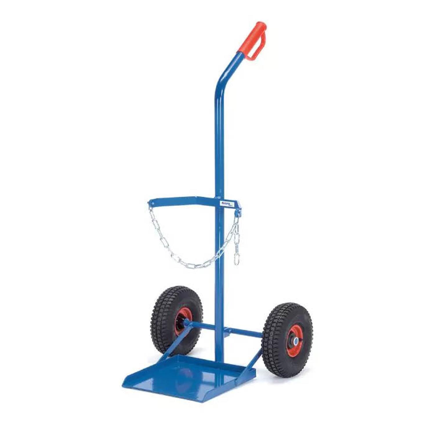 Deze gasflessenwagen is speciaal ontwikkeld voor het vervoer van een 33 kg propaan gasfles. De cilinderwagen wordt compleet gemonteerd geleverd en is direct klaar voor gebruik. Het frame bestaat uit gelaste buizen met een stalen bodemplaat. Deze plaat heeft een schuine oprit waardoor je de propaanfles makkelijk kunt plaatsen.