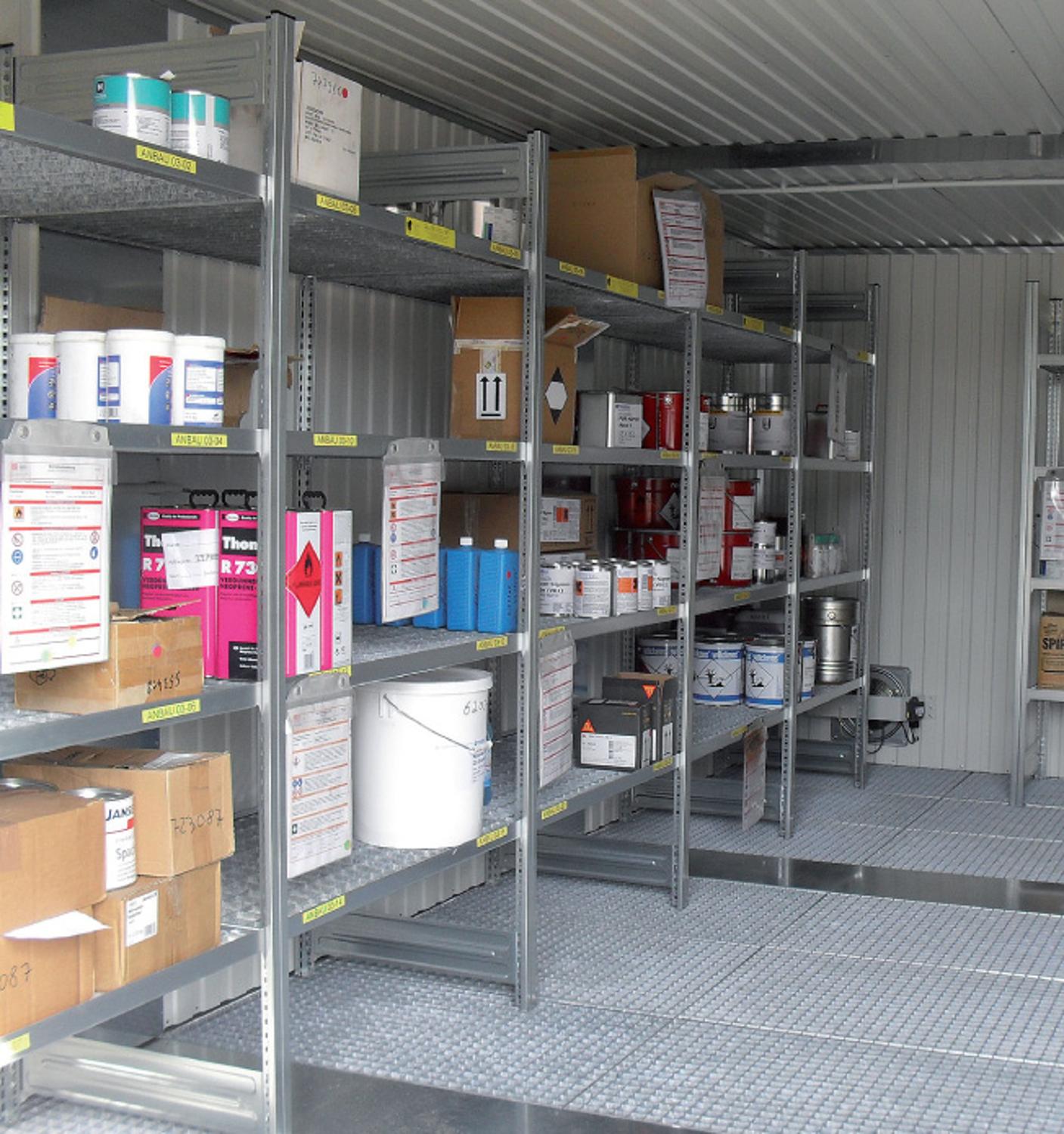 Het interieur van de geïsoleerde milieucontainer is ontwikkeld voor de opslag van gevaarlijke stoffen. Hiervoor zijn alle binnenwanden van vloeistofschotten voorzien. Lekkende gevaarlijke stoffen die tegen de schotten lekken, worden naar de lekbak geleid. De geïsoleerde milieucontainer kun je geheel naar wens uitvoeren met explosieveilige verlichting, ventilatie of stellingmateriaal. Alle accessoires worden compleet geïnstalleerd waardoor je de geïsoleerde milieucontainer meteen kan gebruiken na levering.