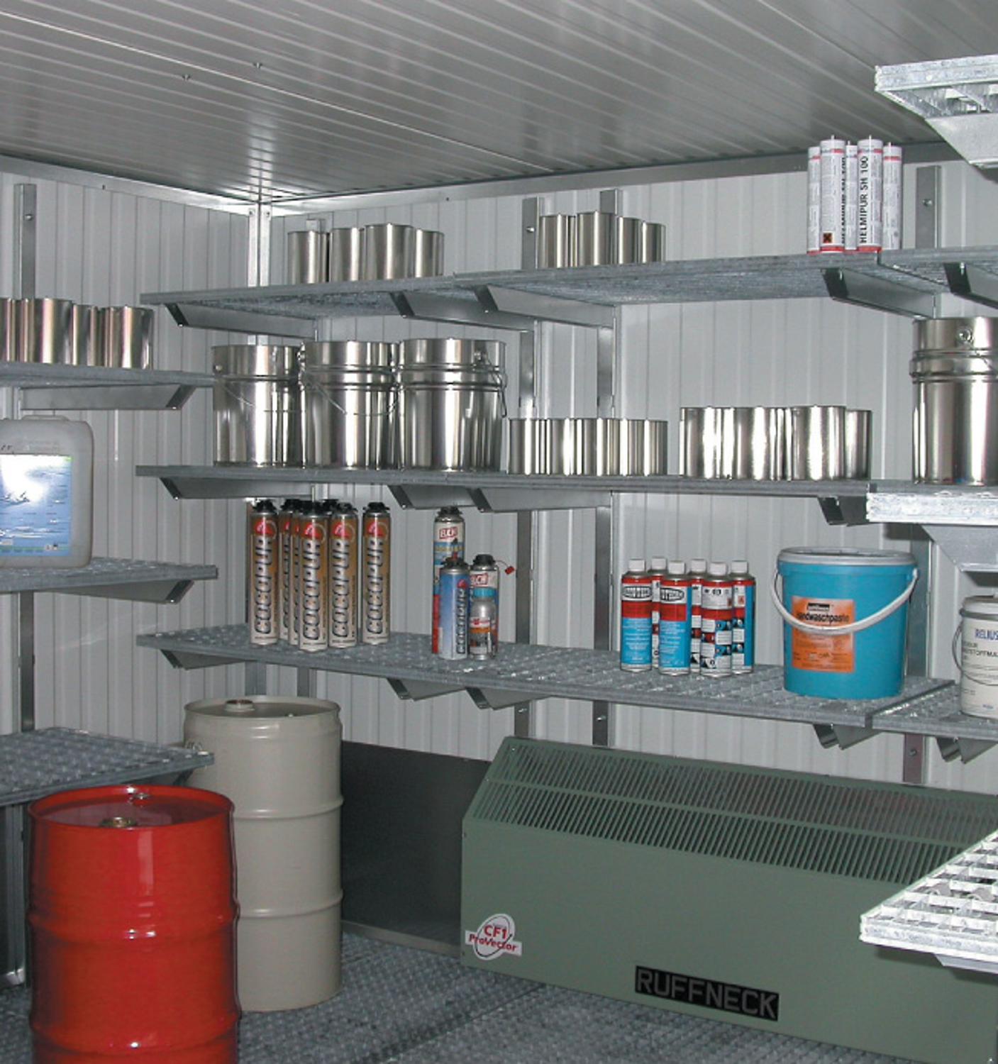 Speciaal ontwikkeld voor de vorstvrije of temperatuurbeheerste opslag van gevaarlijke stoffen conform de richtlijn PGS 15. Thermische isolatie van de geïsoleerde milieuontainer bestaat uit 60 mm dik, niet brandbaar isolatiemateriaal in alle wanden het dak en de binnenkant van de deuren. Thermische isolatie van de opvangbak is optioneel.
