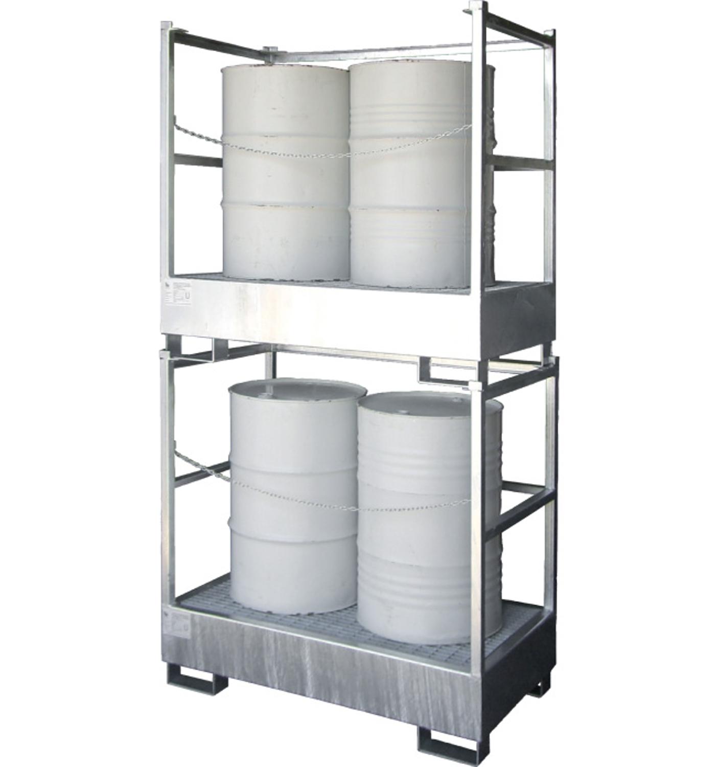 Deze lekbak met opbouw is geschikt voor de opslag van gevaarlijke stoffen in twee 200 litervaten. Bijzonder aan de lekbak met opbouw is de mogelijkheid tot het stapelen van de lekbakken tot 2 hoog. De lekbak heeft vier pootjes en 100 mm bodemvrijheid. Hierdoor kan de lekbak met opbouw makkelijk verplaatst worden.