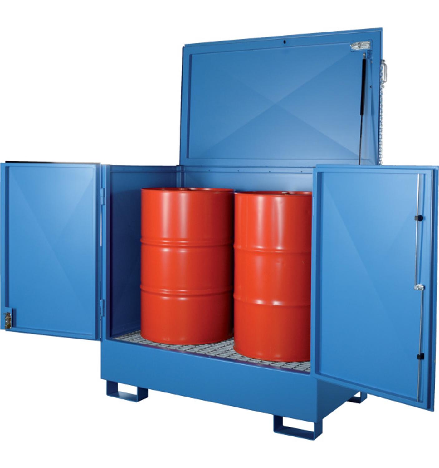 Het vatendepot WSP-4SKKS is geschikt voor de opslag van gevaarlijke stoffen in vier 200 litervaten. Voor de opslag van corrosieve stoffen, zoals zuren en logen, adviseren wij kunststof opslagstations.