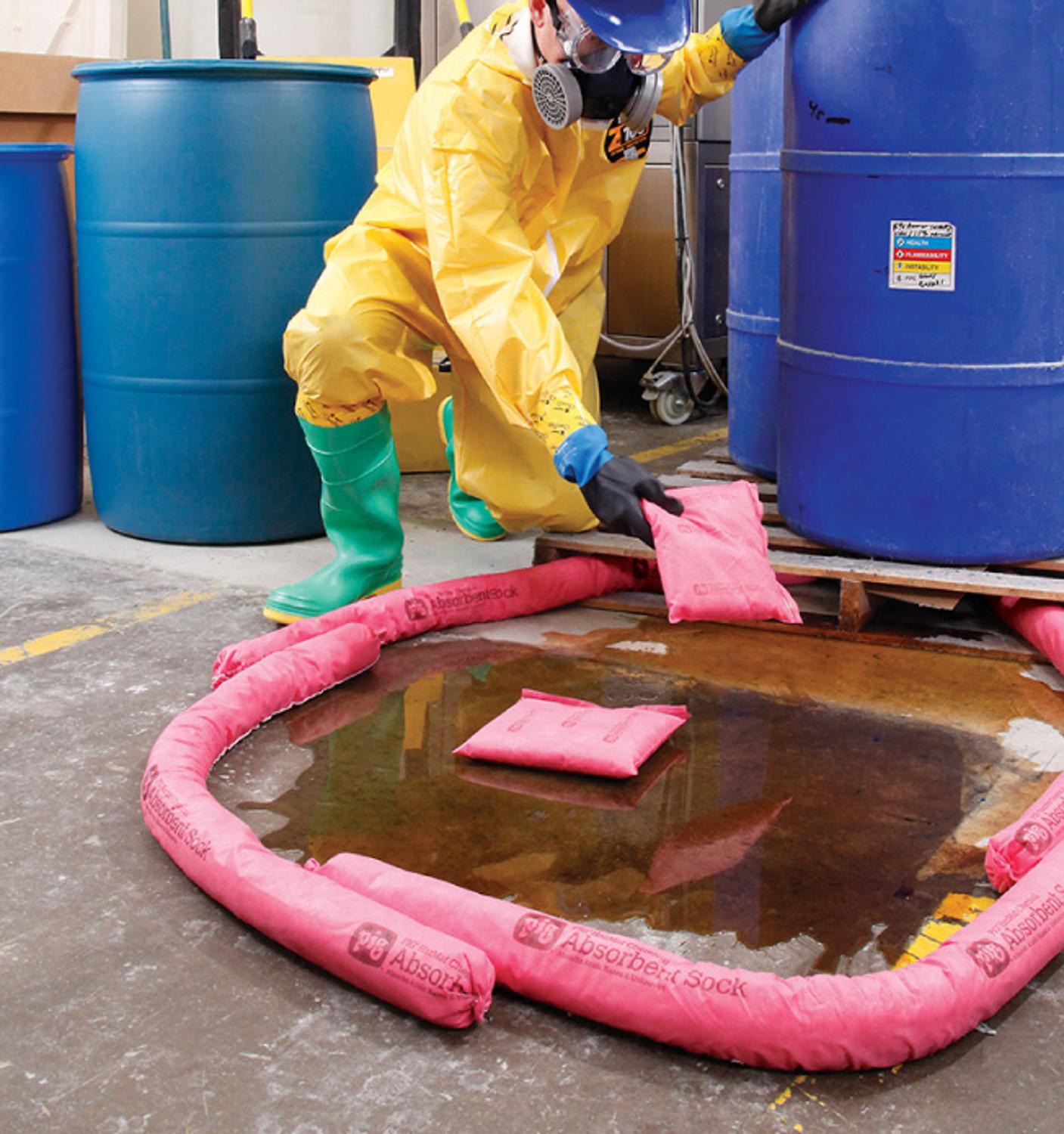 Bestand tegen chemicaliën, géén afbraak of gevaarlijke reactie bij contact met bijtende stoffen. Polypropyleen buitenhoes is chemisch- en scheurbestendig; houdt de geabsorbeerde vloeistof vast, zelfs als het volledig verzadigd is. Speciaal behandeld om sneller meer chemicaliën te absorberen, waaronder corrosieve vloeistoffen met een hogere concentratie, zoals 98% zwavelzuur en 30% natriumhydroxide. Dankzij de roze kleur zijn de absorptiekussens snel te herkennen wanneer ze nodig zijn in geval van lekkages en spillages.