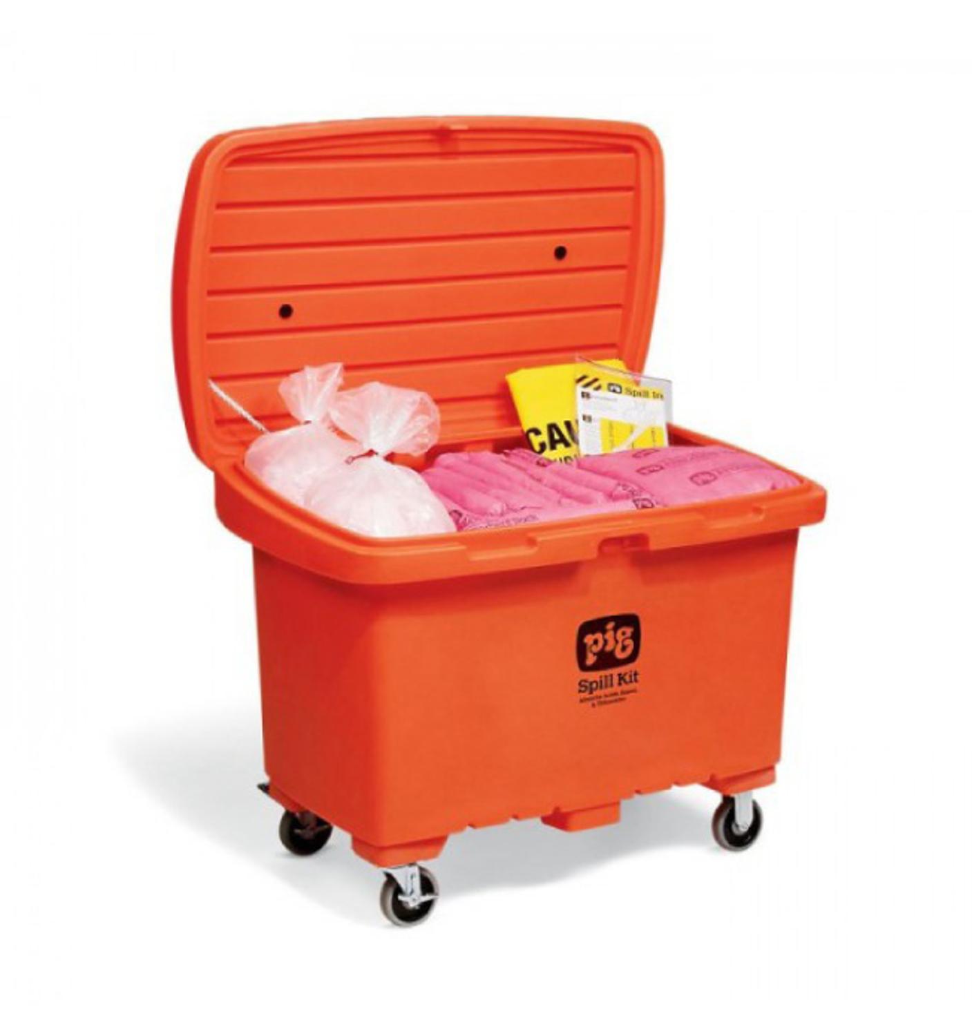 Goed zichtbare Hi-Vis oranje container met klapdeksel voor snelle toegang tot de absorptiemiddelen. Standaard voorzien van 130 mm wielen of optioneel 200 mm wielen zodat je gemakkelijk naar de locatie van een incident kunt rijden. Afsluitbaar zodat de inhoud schoon en droog blijft. Absorbeert tot 287 liter.