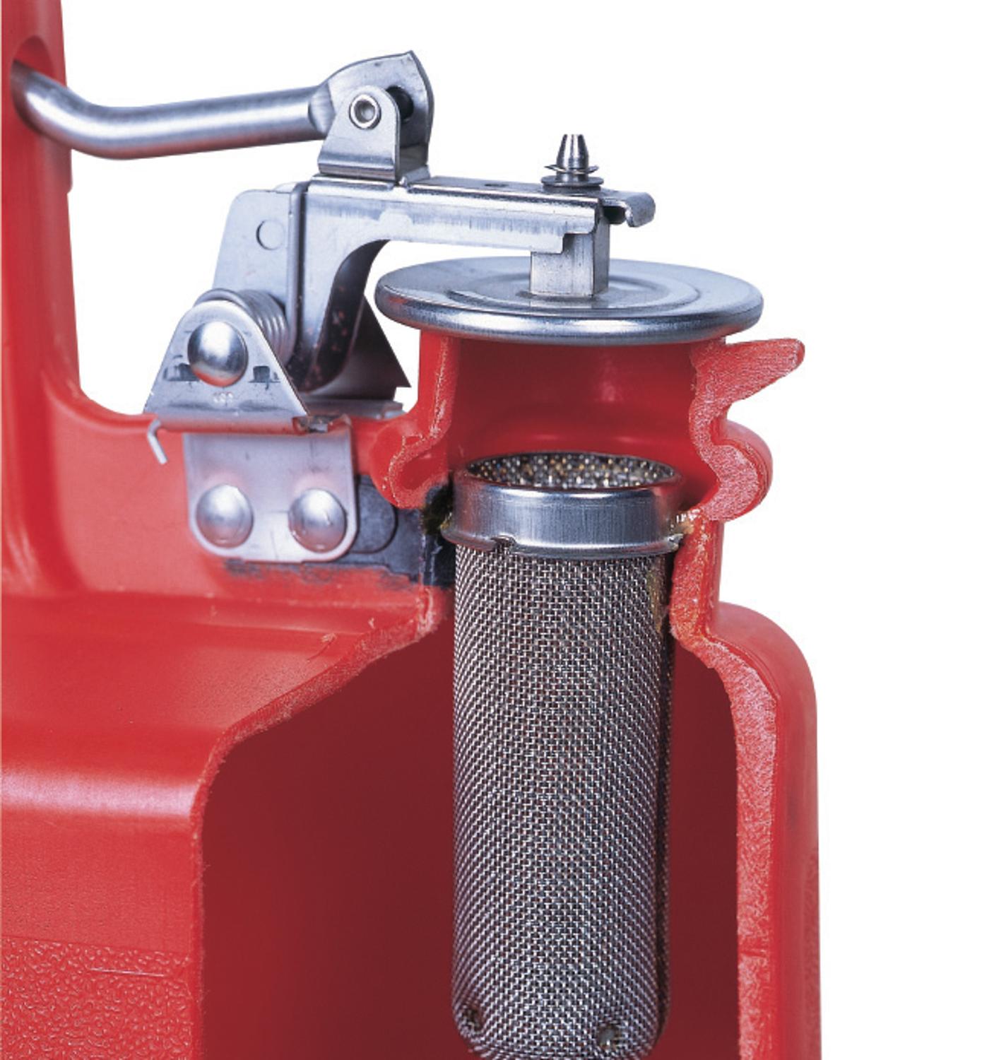 De HDPE veiligheidskannen zijn voorzien van een zelfsluitende dop, drukontlastingsmechanisme en vlamscherm voorkomen dat ontstekingsbronnen binnendringen zonder de vloeistofstroom in of uit de veiligheidskan te beperken. Het gepatenteerde geleidende stroomvoerende koolstofinzetstuk ingebed in de rib van de kannen voltooit een aardpad tussen de dekseleenheid en het vlamscherm. Gebruik met een aardingsstrip voorkomt het onstaan van een statische boog tijdens het vullen en gieten. Duurzame eendelige rompconstructie bestand tegen deuken, perforaties en spanen om bestand te zijn tegen een aggressieve omgeving. Bestand tegen sterke zuren en hitte, tevens geschikt voor de meeste hoogzuivere vloeistoffen. Onafhankelijk getest op brand en goedgekeurd door FM Approvals.