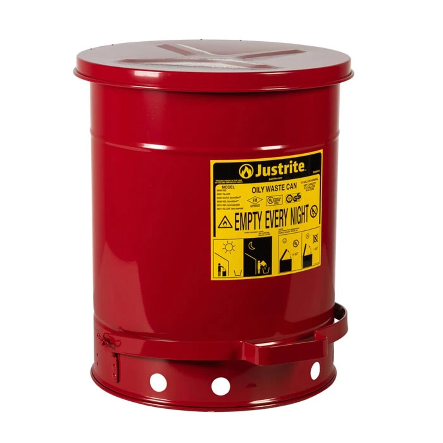 Justrite stalen afvalbak 38 liter | voetbediend | Rood