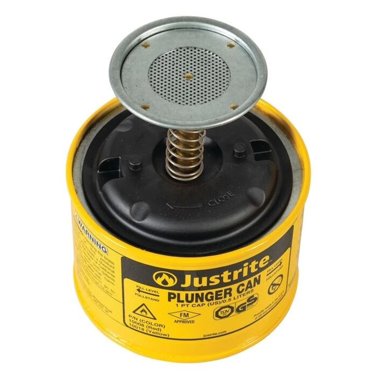 Justrite stalen plunjerkan 0,5 liter | Geel