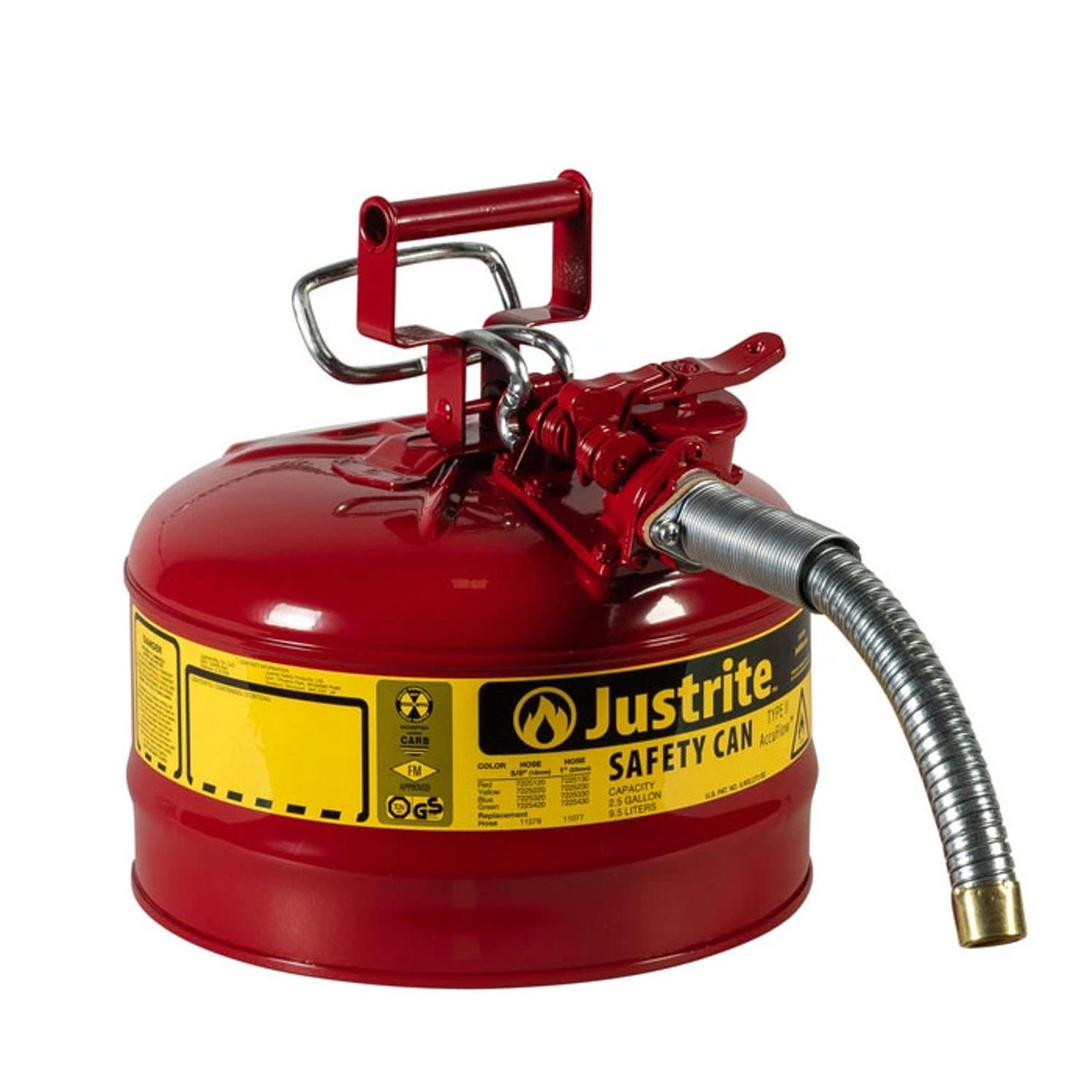 Justrite stalen veiligheidskan 9,5 liter, Type II | Rood