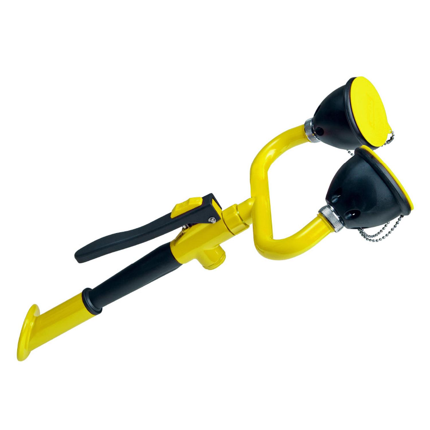De activatie van de knijp oogdouche is met een eenvoudige knijpbeweging. Na activeren blijft conform de norm de afsluiter geopend zelfs nadat je stopt met knijpen. Om de knijp oogdouche te deactiveren druk je eenvoudig het kleine knopje in.