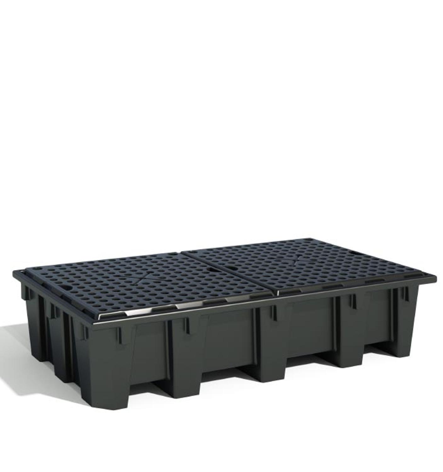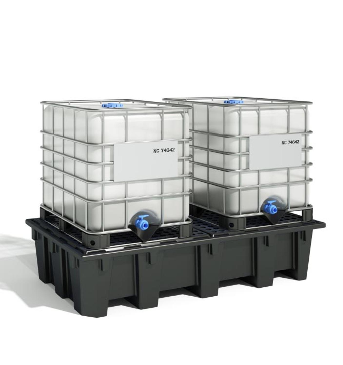 Kunststof lekbak 2 x IBC met kunststof rooster