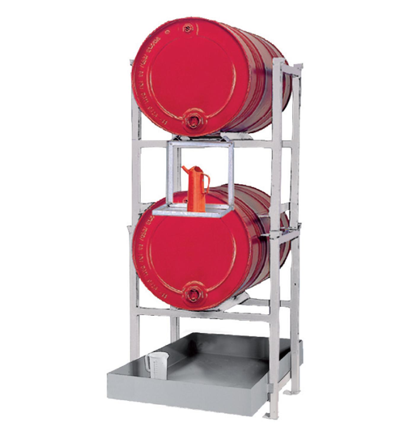 Speciaal geschikt voor de opslag van liggende vaten in stapelframes. Wordt geleverd zonder rooster. Stapelframe is tegen omvallen beveiligd.