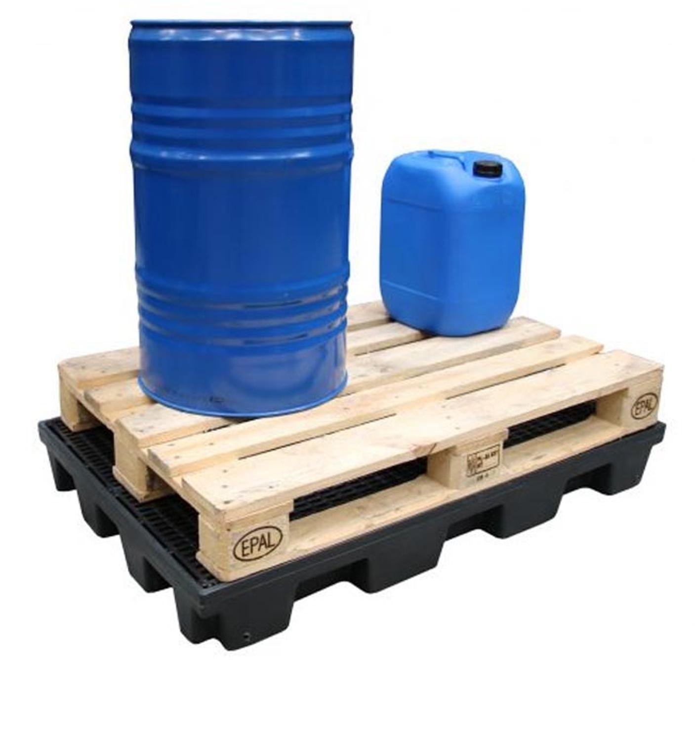Speciaal ontwikkeld voor de opslag van 6 x 60 litervaten of een complete europallet. Conform de PGS 15 heeft de lekbak voldoendeOpvangvolumeom lekkages op te vangen. De regels uit de PGS 15 schrijven voor dat je 110% van de grootste verpakking of 10% van het totaal moet kunnen opvangen. Bij de opslag van 6 x 60 litervat betekent dit 66 liter of 36 liter, de grootste waarde is van toepassing. Met een inhoud van 120 liter voldoet deze lekbak aan alle voorwaarden voor een juiste opslag van je gevaarlijke stoffen in een stalen of kunststofvaten