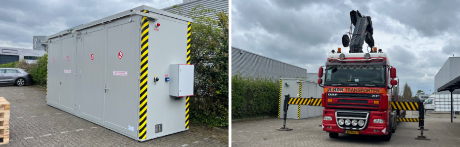 Nieuwe brandwerende lithium container afgeleverd op locatie. De lithium palletcontainer heeft een brandwerendheid van 60 minuten en is uitgerust met een geavanceerd brand onderdrukkingssysteem. Ben jij op zoek naar de juiste opslag voor je voorraad lithium batterijen? Neem contact op met Bumax en we helpen je graag met de juiste oplossing voor jouw lithium opslag.