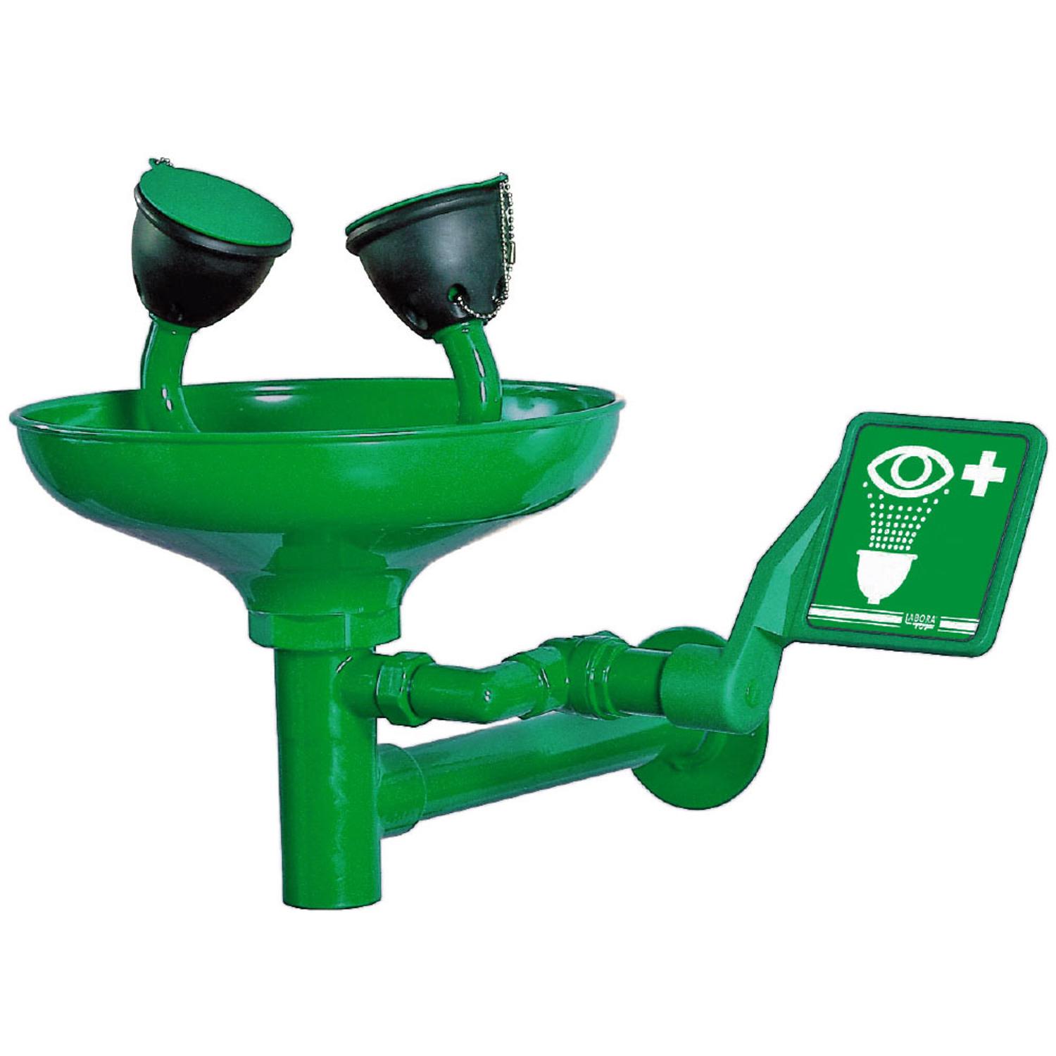 Wandmontage van de oogdouche met kunststof opvangschaal