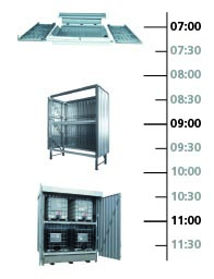 De montage is zeer eenvoudig en met de meegeleverde montagehandleiding lukt het monteren altijd. Binnen een tijdsbestek van 4 uur bouwt u uw eigen PGS 15 opslagsysteem voor gevaarlijke stoffen. De Bumax Quick-Up containers zijn leverbaar in twee versies: