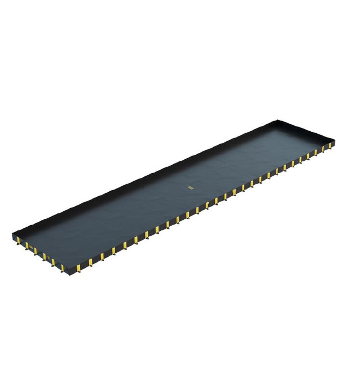 De flexibele lekbakken zijn snel inzetbaar en eenvoudig te installeren. Neem de lekbak uit de verpakking en klik de zijkanten omhoog. De gepatenteerde Rigid Lock wandsteunen kunnen neergeklapt worden zodat voertuigen eroverheen kunnen rijden. Deze steunen kunnen een gewichten aan van 5.000 kg wieldruk.