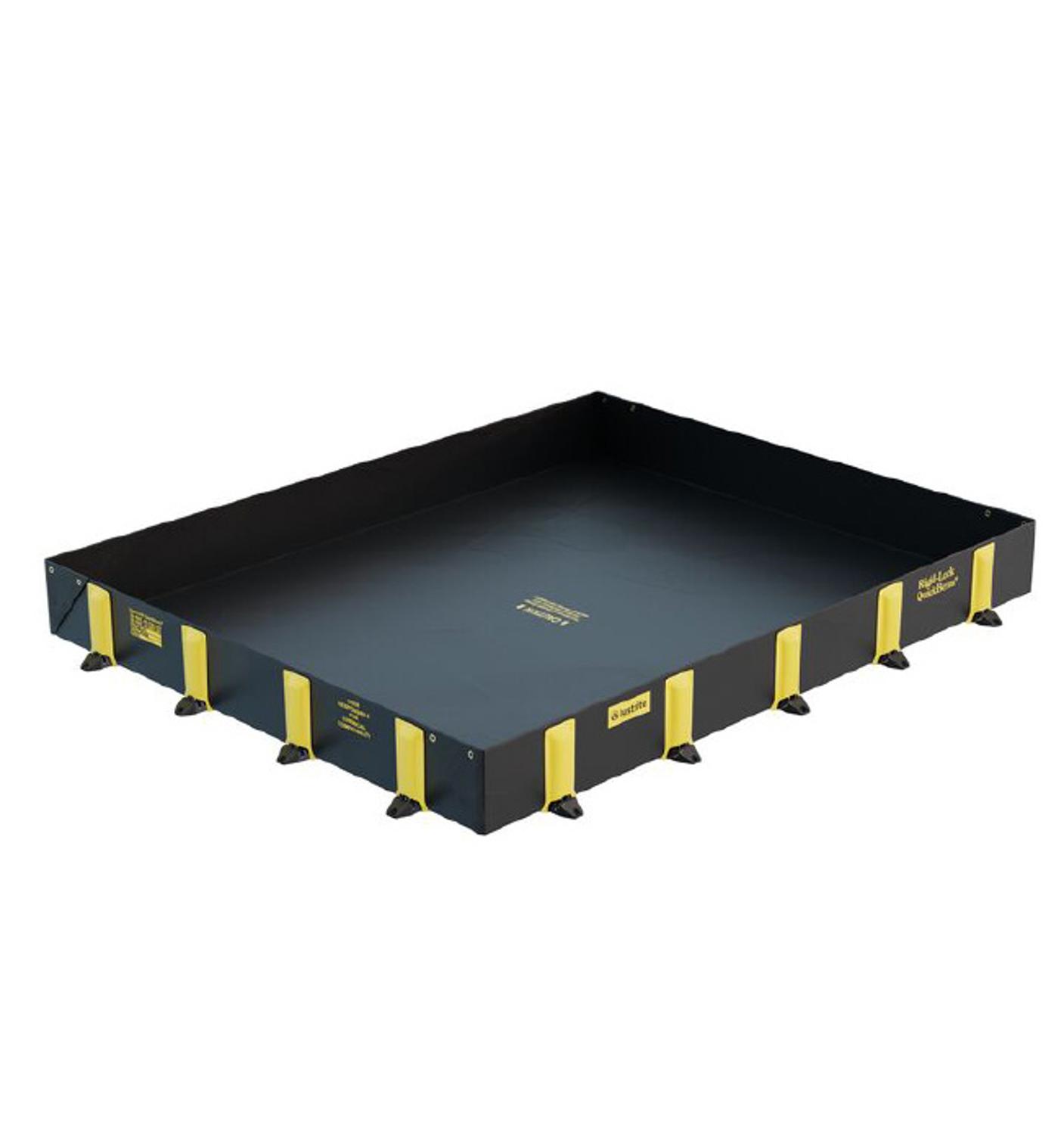 De flexibele lekbakken zijn snel inzetbaar en eenvoudig te installeren. Neem de lekbak uit de verpakking en klik de zijkanten omhoog. De gepatenteerde Rigid Lock wandsteunen kunnen neergeklapt worden zodat voertuigen eroverheen kunnen rijden. Deze steunen kunnen een gewichten aan van 5.000 kg wieldruk.