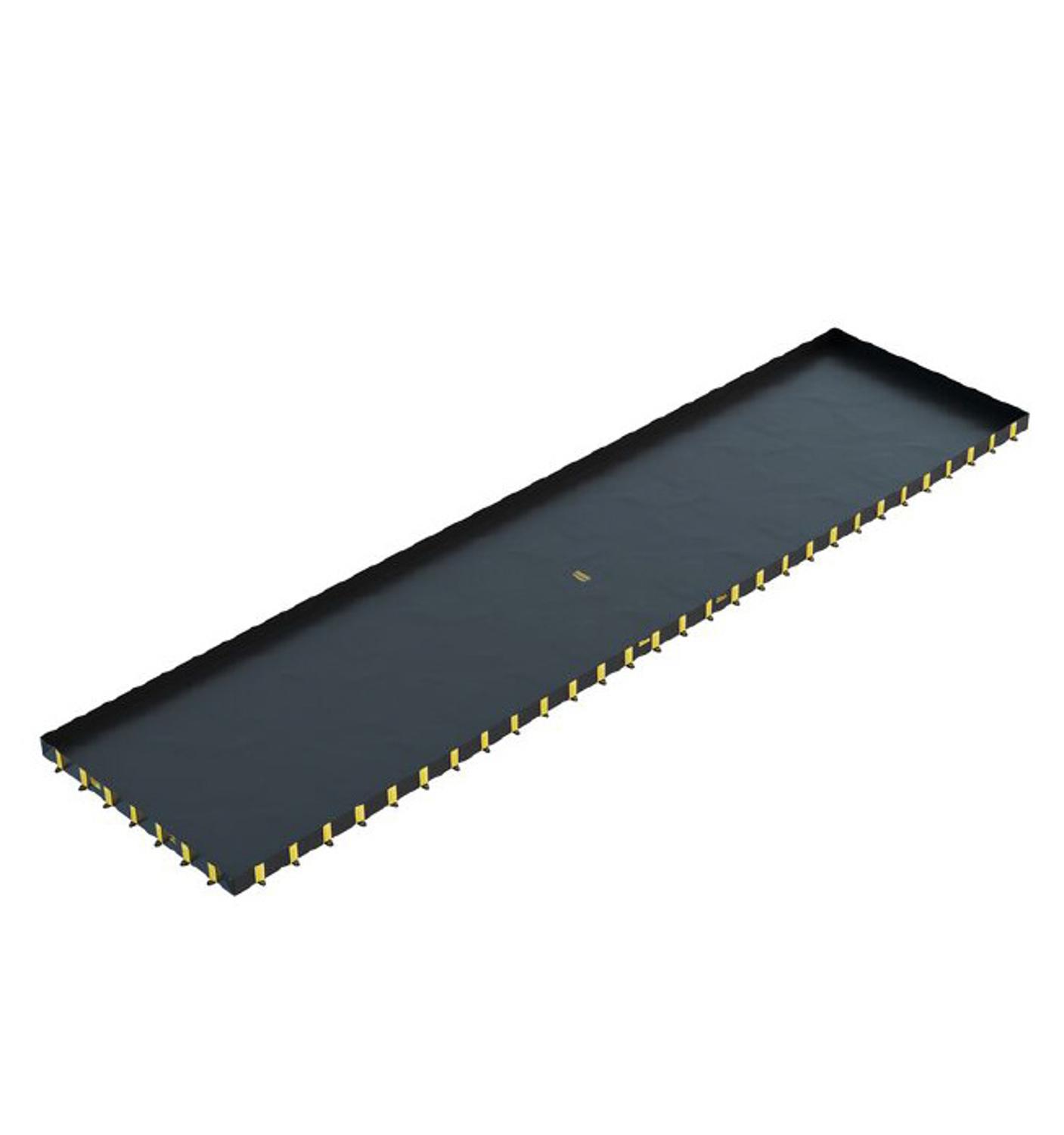 De flexibele lekbakken zijn snel inzetbaar en eenvoudig te installeren. Neem de lekbak uit de verpakking en klik de zijkanten omhoog. De gepatenteerde Rigid Lock wandsteunen kunnen neergeklapt worden zodat voertuigen eroverheen kunnen rijden. Deze steunen kunnen een gewichten aan van 5.000 kg wieldruk.