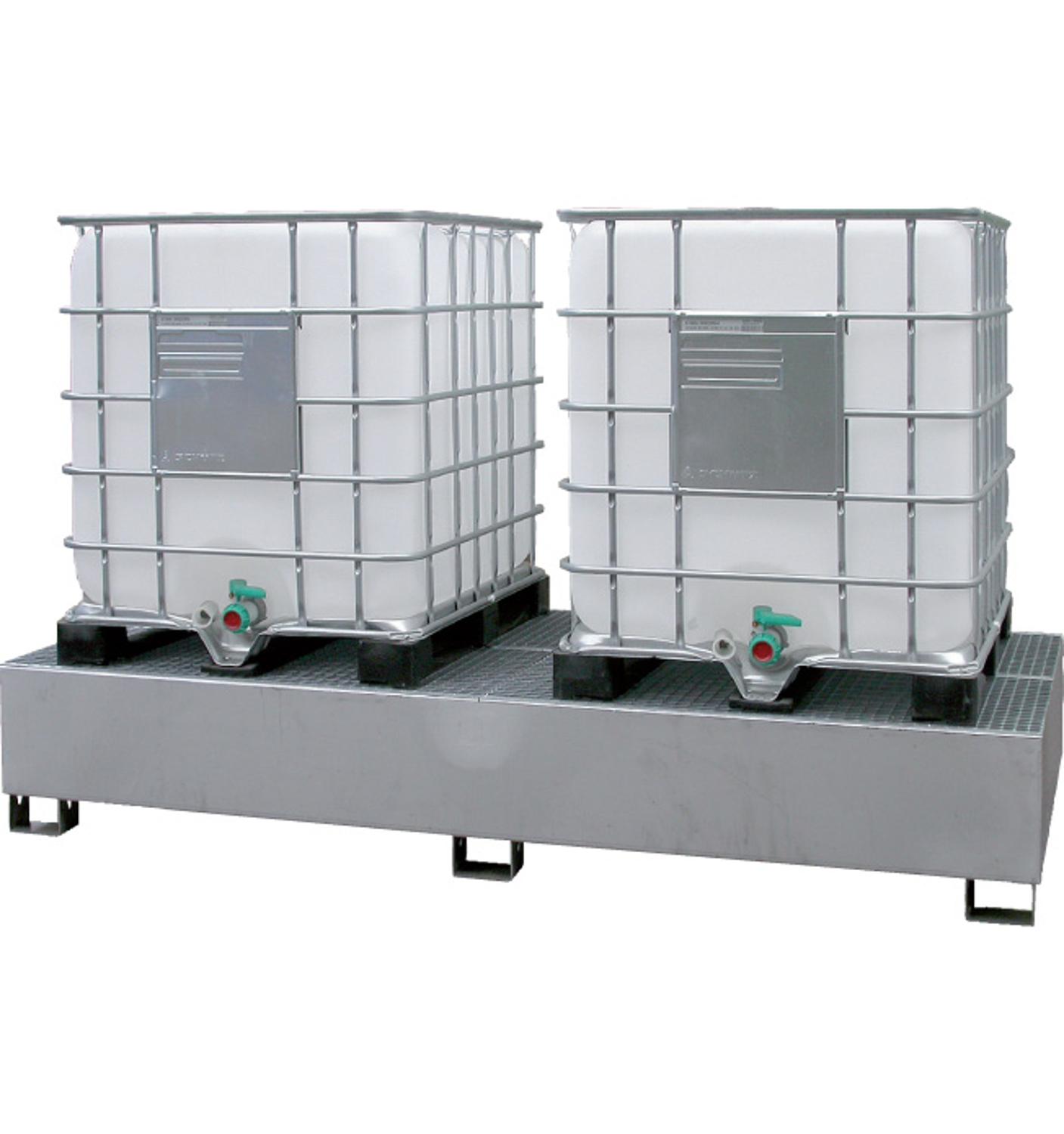 RVS lekbak 2 x IBC | Verzinkt rooster