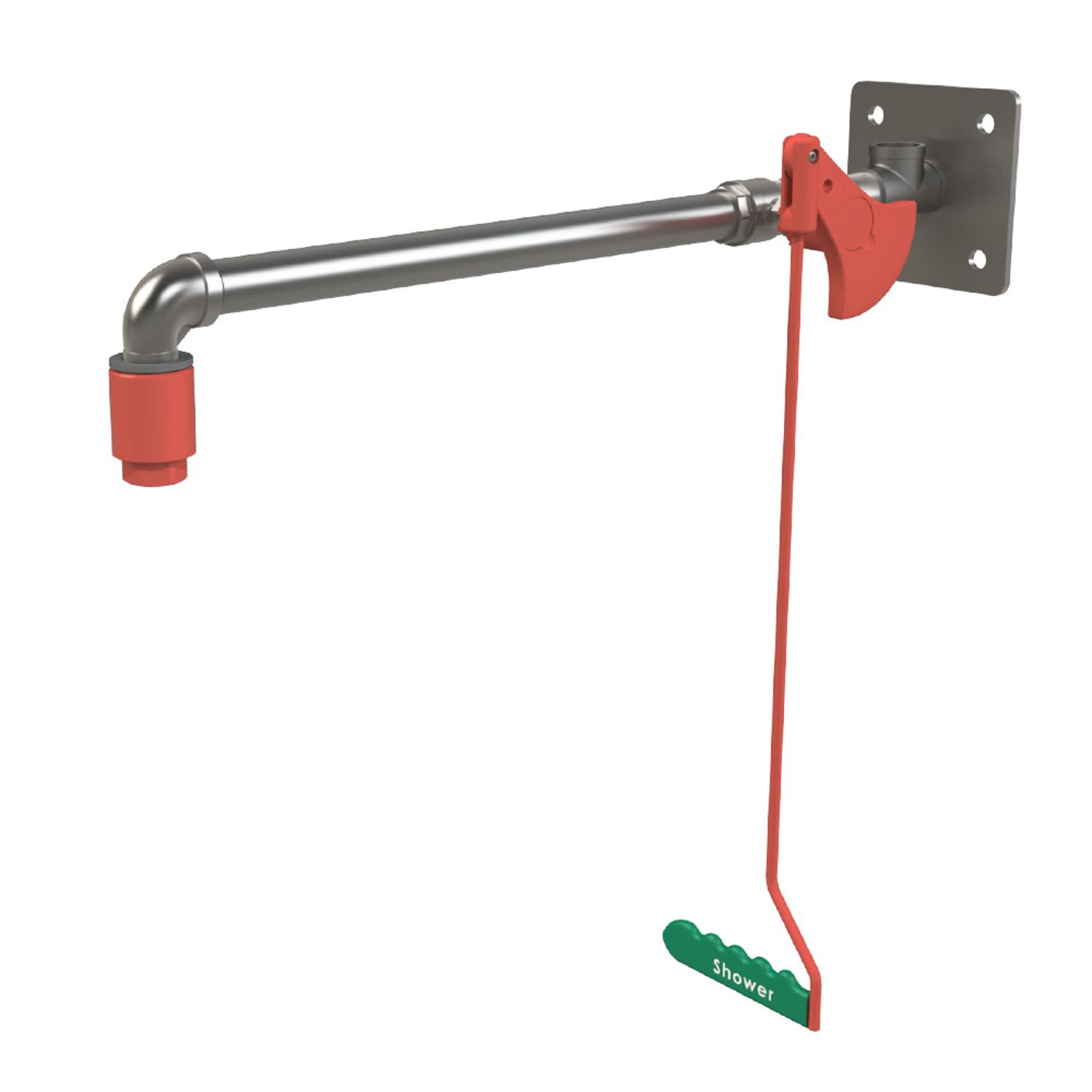 De rvs lichaamsdouche activeer je door de hendel naar beneden te trekken. Na activatie blijft de afsluiter conform de norm geopend totdat deze handmatig is gedeactiveerd. Hiermee voorkom je dat de watertoevoer stopt wanneer je de hendel loslaat. Tijdens een calamiteit moet de nooddouche blijven stromen, ook wanneer je de hendel loslaat.