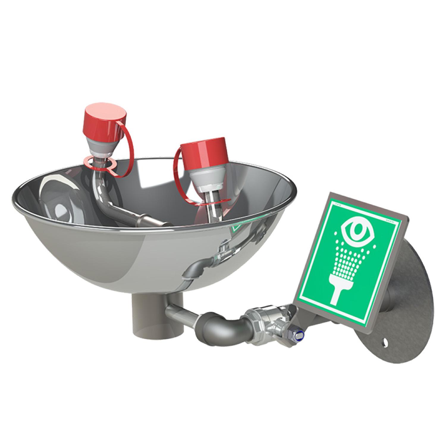 Wandmontage van de oogdouche met RVS opvangschaal