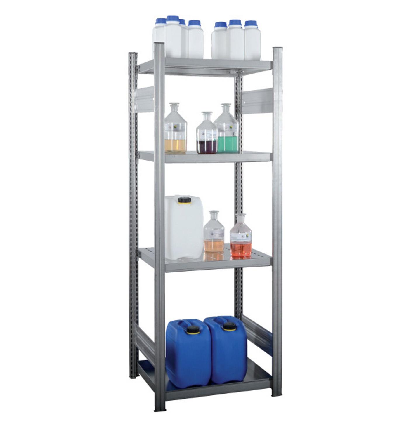 De opslagstelling KG-GR 600-300 VA van Bumax is een basisstelling met een stellingdiepte van 300 mm. Geschikt voor opslag van milieugevaarlijke en bijtende stoffen conform PGS 15. Speciaal ontwikkeld voor gebruik in laboratoria, ziekenhuizen en voedingsmiddelen industrie. De opslagstelling is voorzie