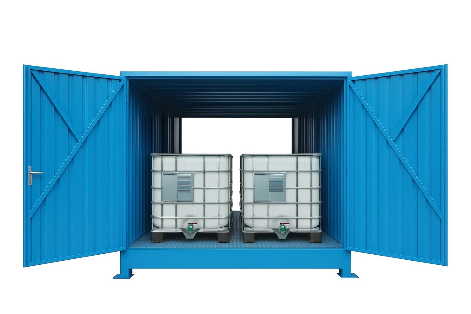 Stalen container speciaal ontwikkeld voor de veilige opslag van gevaarlijke stoffen. De container is opgebouwd uit verzinkt en gecoat staalplaat, in basis een opvangbak met een frame wat bestaat uit een stabiele raamconstructie van stalen gewalste kokerprofielen en is voorzien voetplaten. Compleet met een bodemvrijheid van 60 mm ter voorkoming van corrosie. Standaard is de stalen container tevens voorzien van een aardingspunt. De container wordt volledig gemonteerd geleverd en is direct gereed voor gebruik.