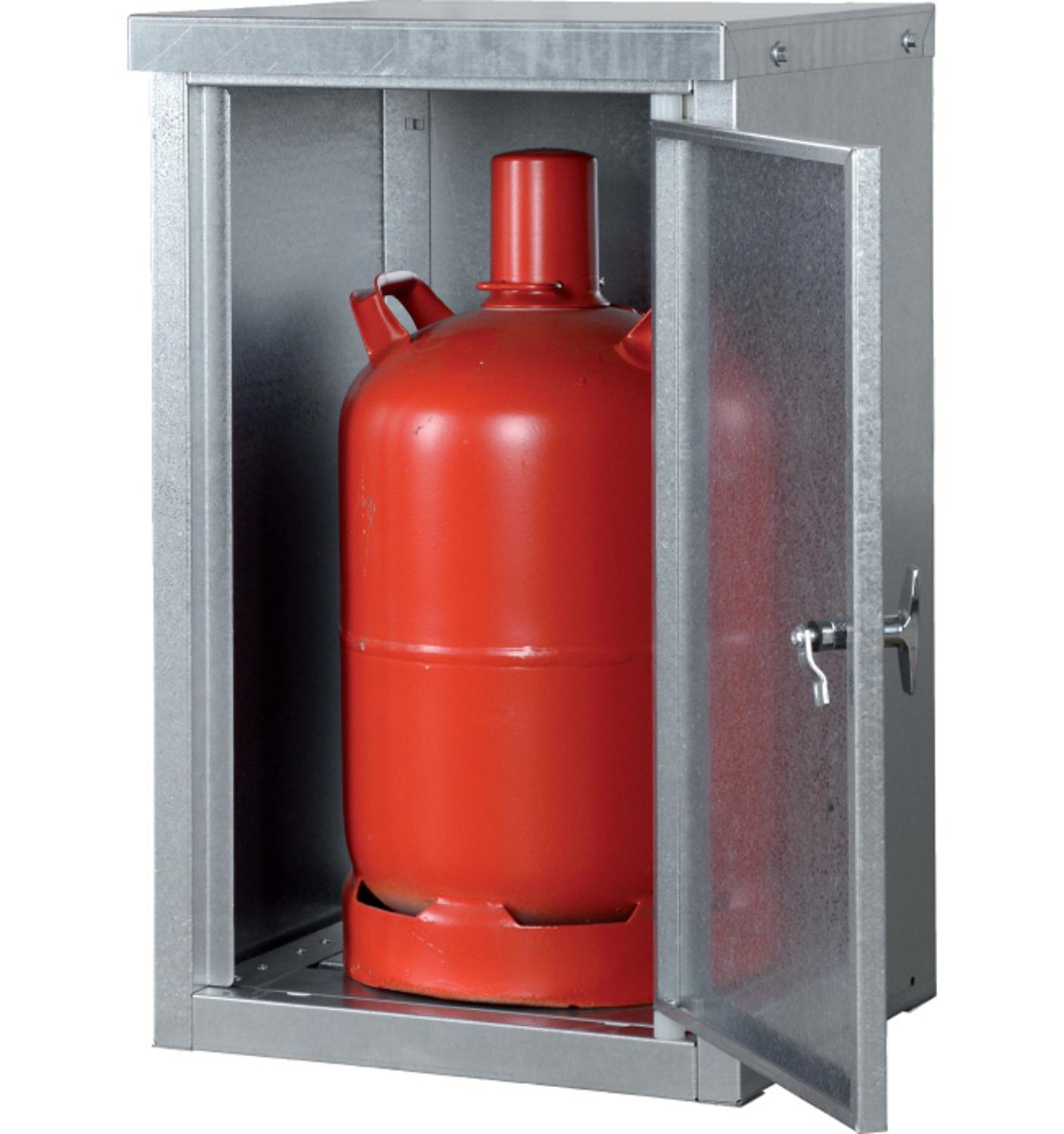 Robuuste, gelaste constructie van verzinkt dik plaatstaal. Ideaal voor de buitenopslag van je propaangasflessen. Dak en achterwand zijn gesloten en een stevige bodem als opstelvlak. Horizontale sparingen boven en onder de deur voor de vereiste ventilatie conform PGS 15. De deur is met een cilinderslot af te sluiten voor onbevoegden en voor bescherming tegen diefstal. Voorzien van gevaren pictogram op de deur en wordt gemonteerd geleverd.