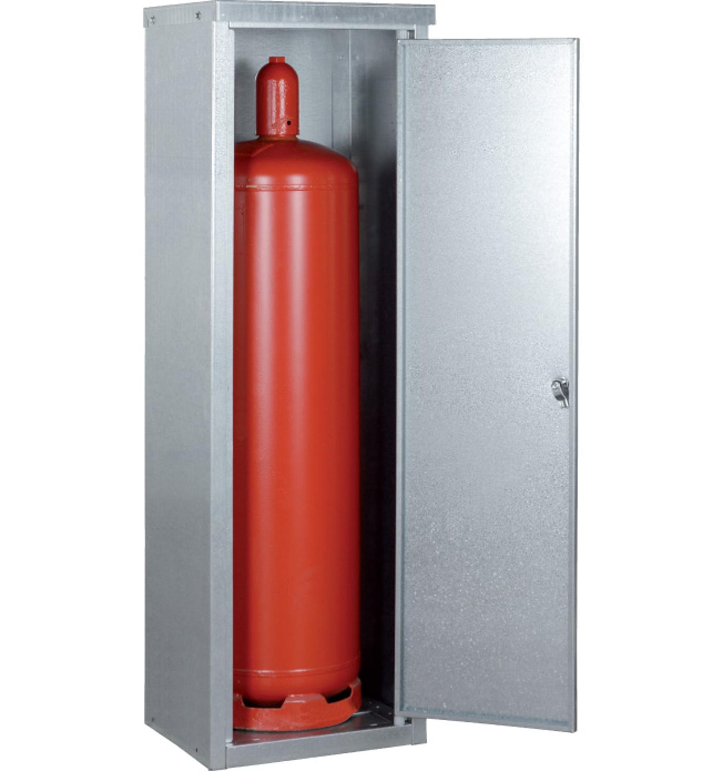 Robuuste, gelaste constructie van verzinkt dik plaatstaal. Ideaal voor de buitenopslag van je propaangasflessen. Dak en achterwand zijn gesloten en een stevige bodem als opstelvlak. Horizontale sparingen boven en onder de deur voor de vereiste ventilatie conform PGS 15. De deur is met een cilinderslot af te sluiten voor onbevoegden en voor bescherming tegen diefstal. Voorzien van gevaren pictogram op de deur en wordt gemonteerd geleverd.