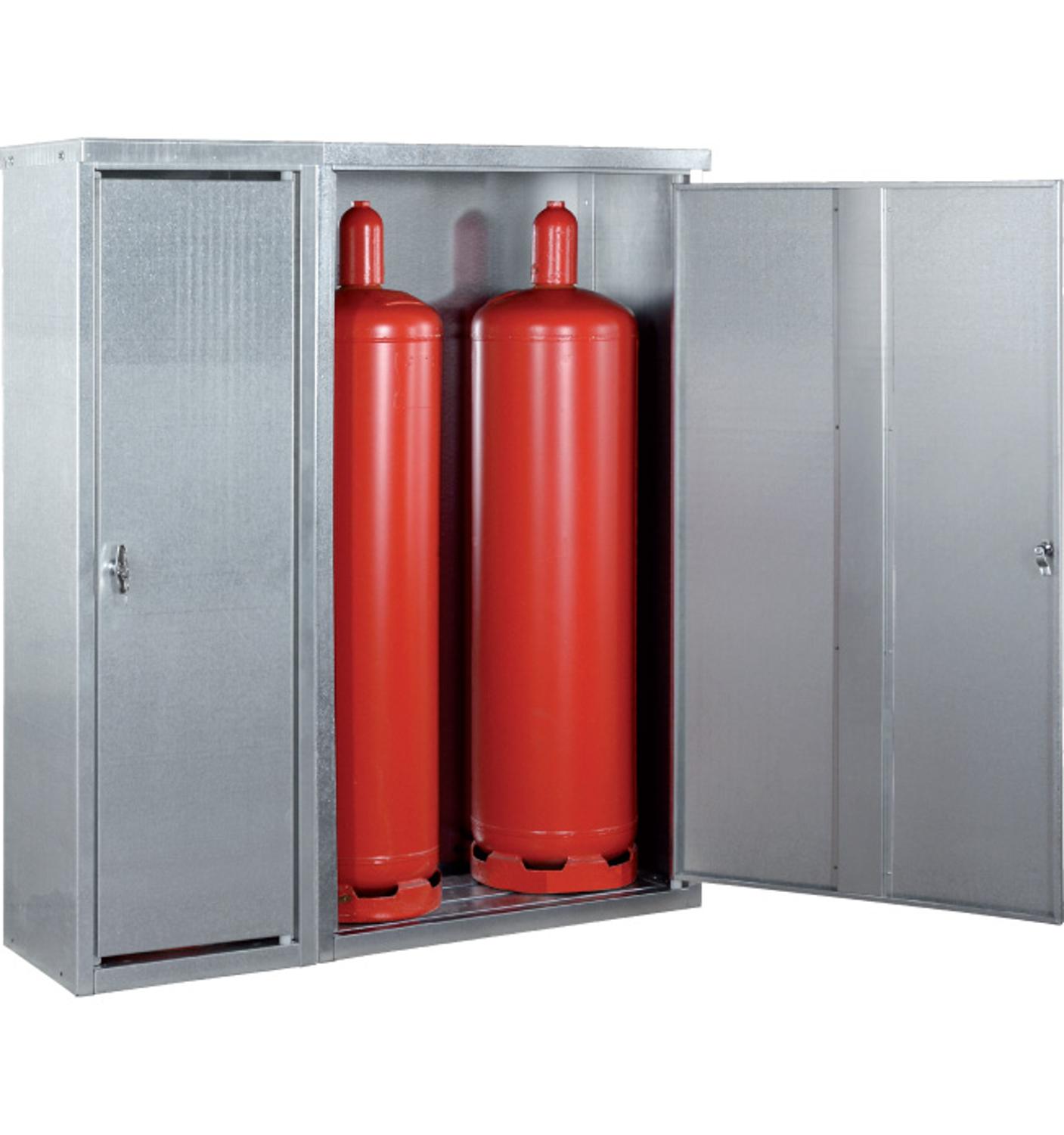 Robuuste, gelaste constructie van verzinkt dik plaatstaal. Ideaal voor de buitenopslag van je propaangasflessen. Dak en achterwand zijn gesloten en een stevige bodem als opstelvlak. Horizontale sparingen boven en onder de deuren voor de vereiste ventilatie conform PGS 15. De deuren zijn met een cilinderslot af te sluiten voor onbevoegden en voor bescherming tegen diefstal. Voorzien van gevaren pictogram op de deuren en wordt gemonteerd geleverd.