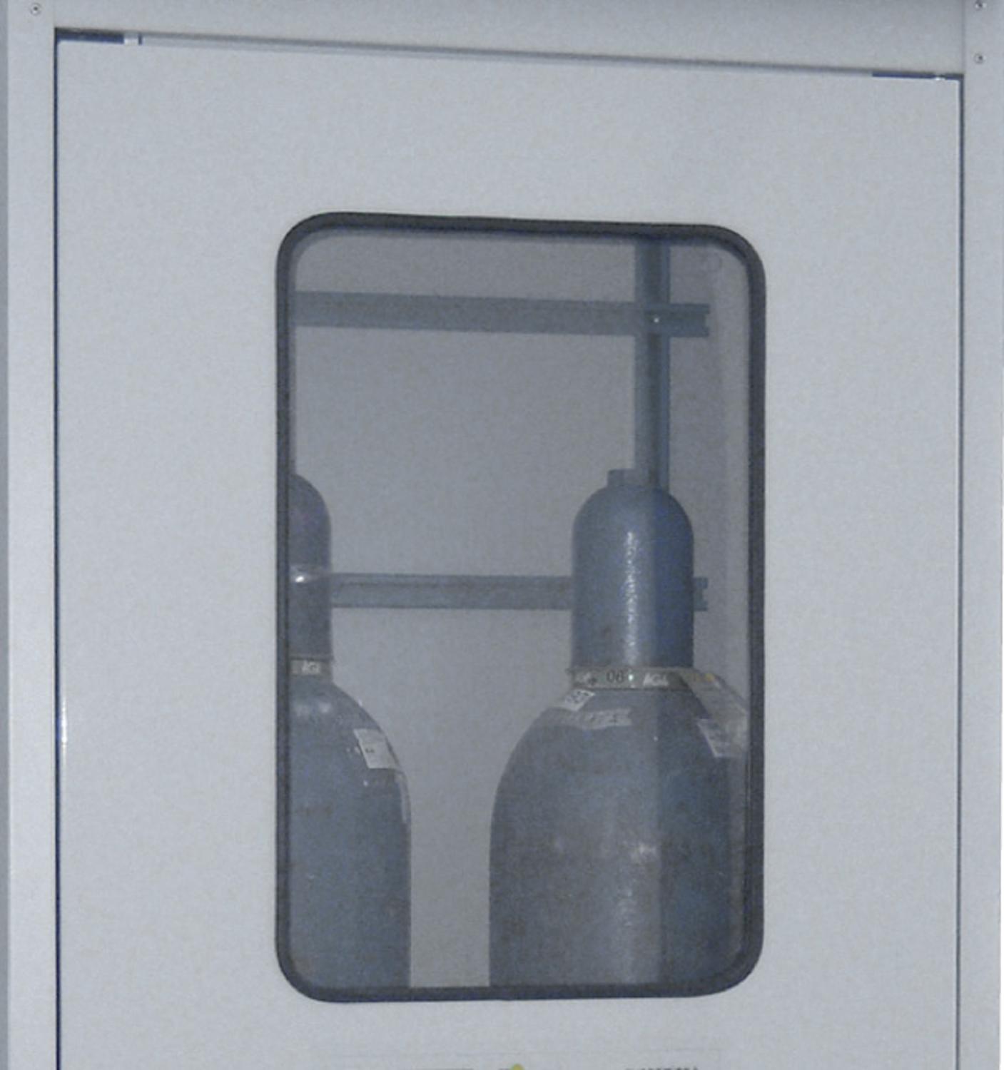 Stalen gasflessenkast met venster in deur, type TRG 1050