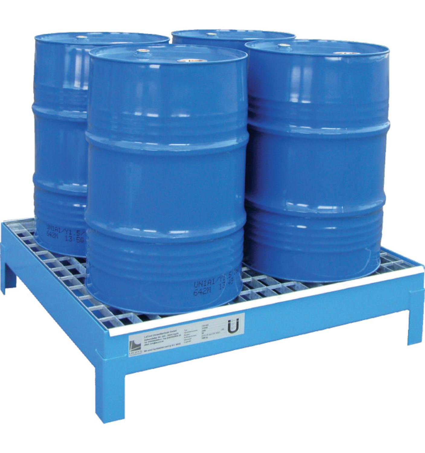 Deze lekbak is geschikt voor de opslag van gevaarlijke stoffen in vier 60 litervaten. Voor de opslag van corrosieve stoffen, zoals zuren en logen, adviseren wij kunststof lekbakken of een polyethyleen inzet bak. Deze inzetbakken vind je bij de gerelateerde producten. De lekbak heeft vier pootjes en 100 mm bodemvrijheid. Hierdoor kan de lekbak makkelijk verplaatst worden.
