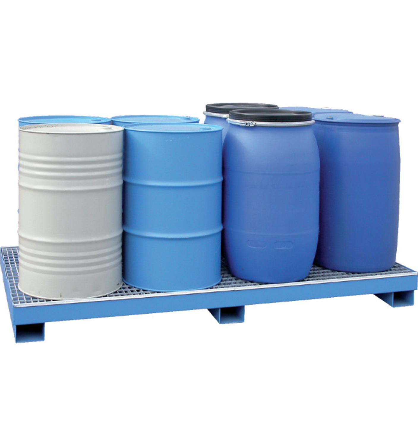 Deze lekbak is geschikt voor de opslag van gevaarlijke stoffen in acht 200 litervaten. Voor de opslag van corrosieve stoffen, zoals zuren en logen, adviseren wij kunststof lekbakken of een polyethyleen inzet bak. Deze inzetbakken vind je bij de gerelateerde producten. De lekbak heeft vier pootjes en 100 mm bodemvrijheid. Hierdoor kan de lekbak makkelijk verplaatst worden.