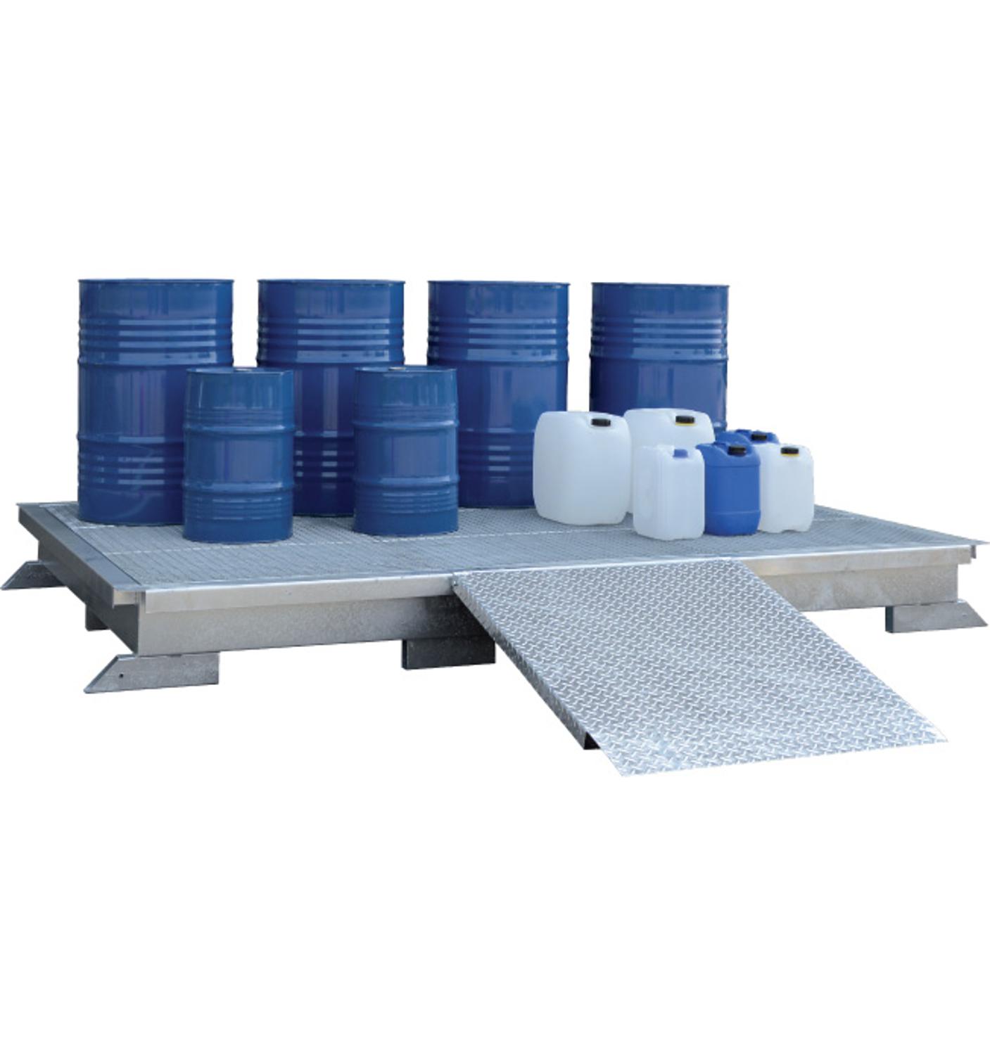 De lekbak GW 4 heeft een thermisch verzinkte afwerking. Hierdoor heeft de lekbak een goede bescherming tegen roestvorming en een lange levensduur. Optioneel is een handige oprijplaat leverbaar en deze is ook thermisch verzinkt.