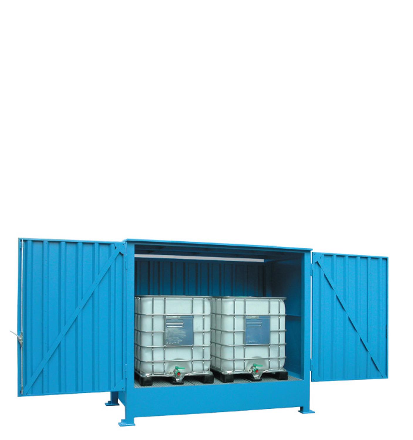 De systeemcontainer is opgebouwd uit verzinkt en gecoat staalplaat. Net als de lekbak geven deze verzinkt stalen wand- en dakprofielen een zeer lange levensduur aan de systeemcontainer. Het staal is 3 mm dik en geeft de systeemcontainer een zeer solide afwerking die tegen een stootje kan. Optioneel kan de buitenzijde afgewerkt worden in een blauwe lak, RAL 5015. Deze laklaag wordt extra aangebracht over de verzinkte buitenzijde. Hiermee vergroot je de corrosiebestendigheid van de systeemcontainer.