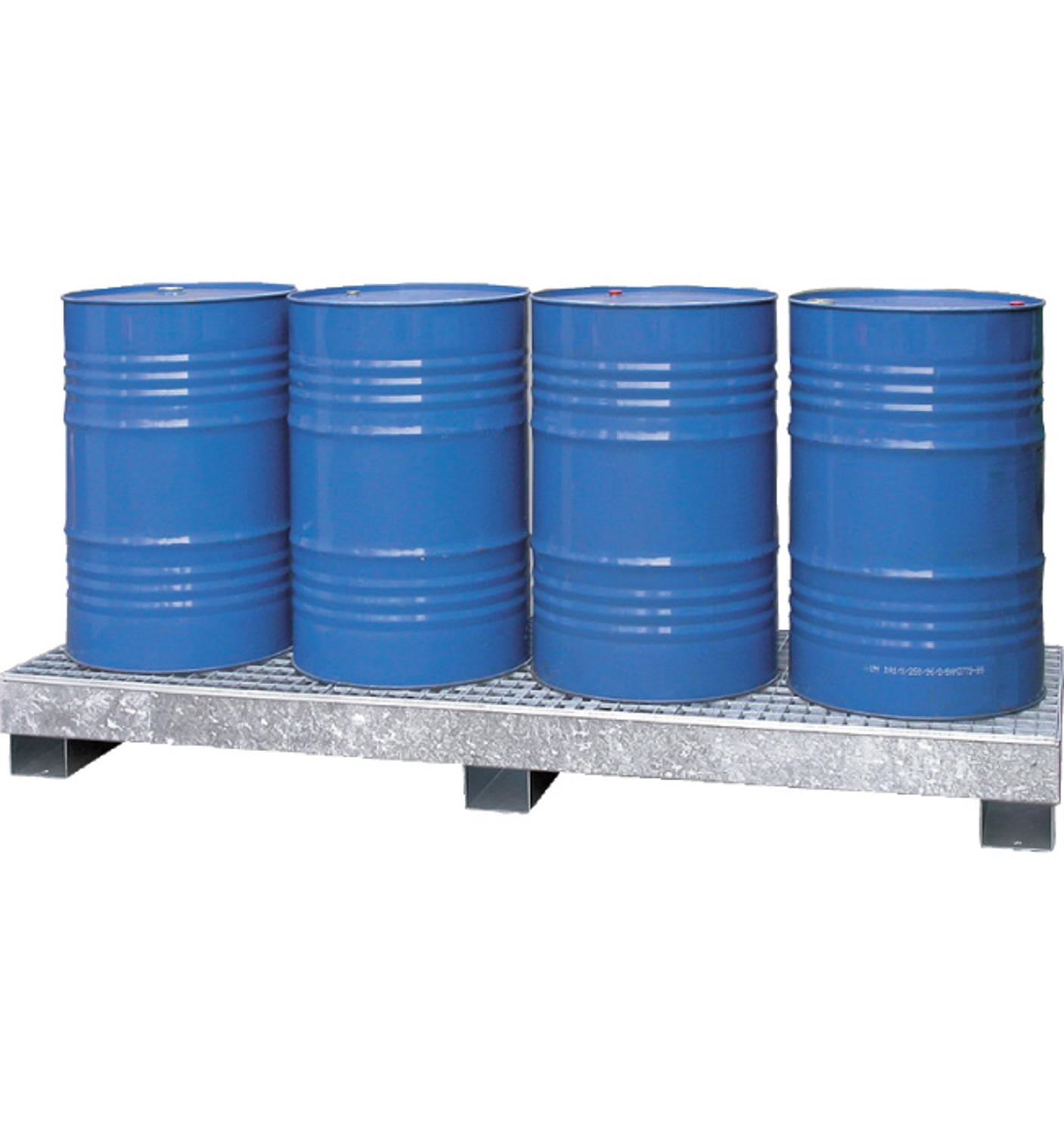 Deze lekbak is geschikt voor de opslag van gevaarlijke stoffen in vier 200 litervaten. Voor de opslag van corrosieve stoffen, zoals zuren en logen, adviseren wij kunststof lekbakken of een polyethyleen inzet bak. Deze inzetbakken vind je bij de gerelateerde producten. De lekbak heeft vier pootjes en 100 mm bodemvrijheid. Hierdoor kan de lekbak makkelijk verplaatst worden.