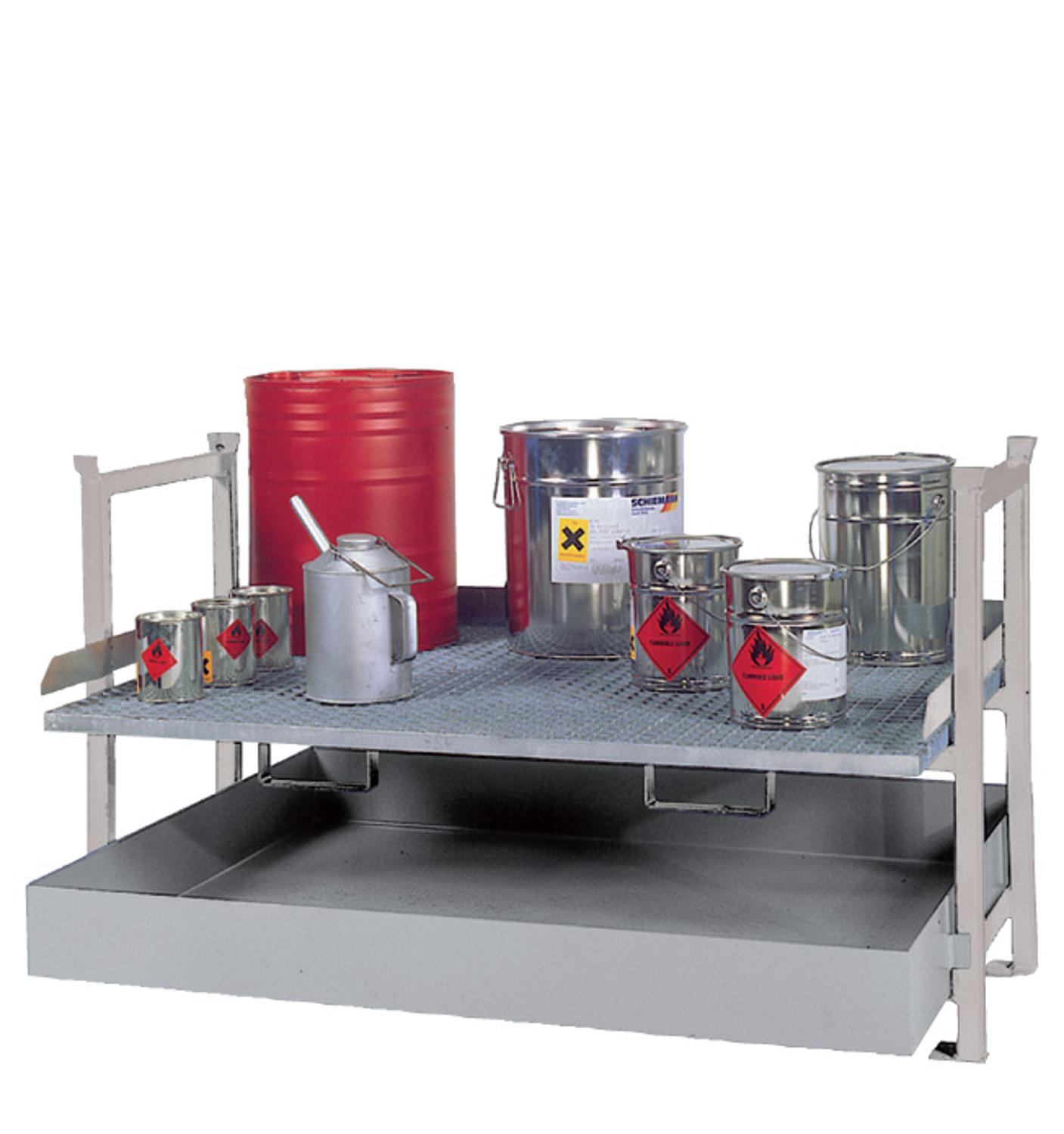 Speciaal geschikt voor de opslag van liggende vaten in stapelframes. Wordt geleverd zonder rooster. Stapelframe is tegen omvallen beveiligd.