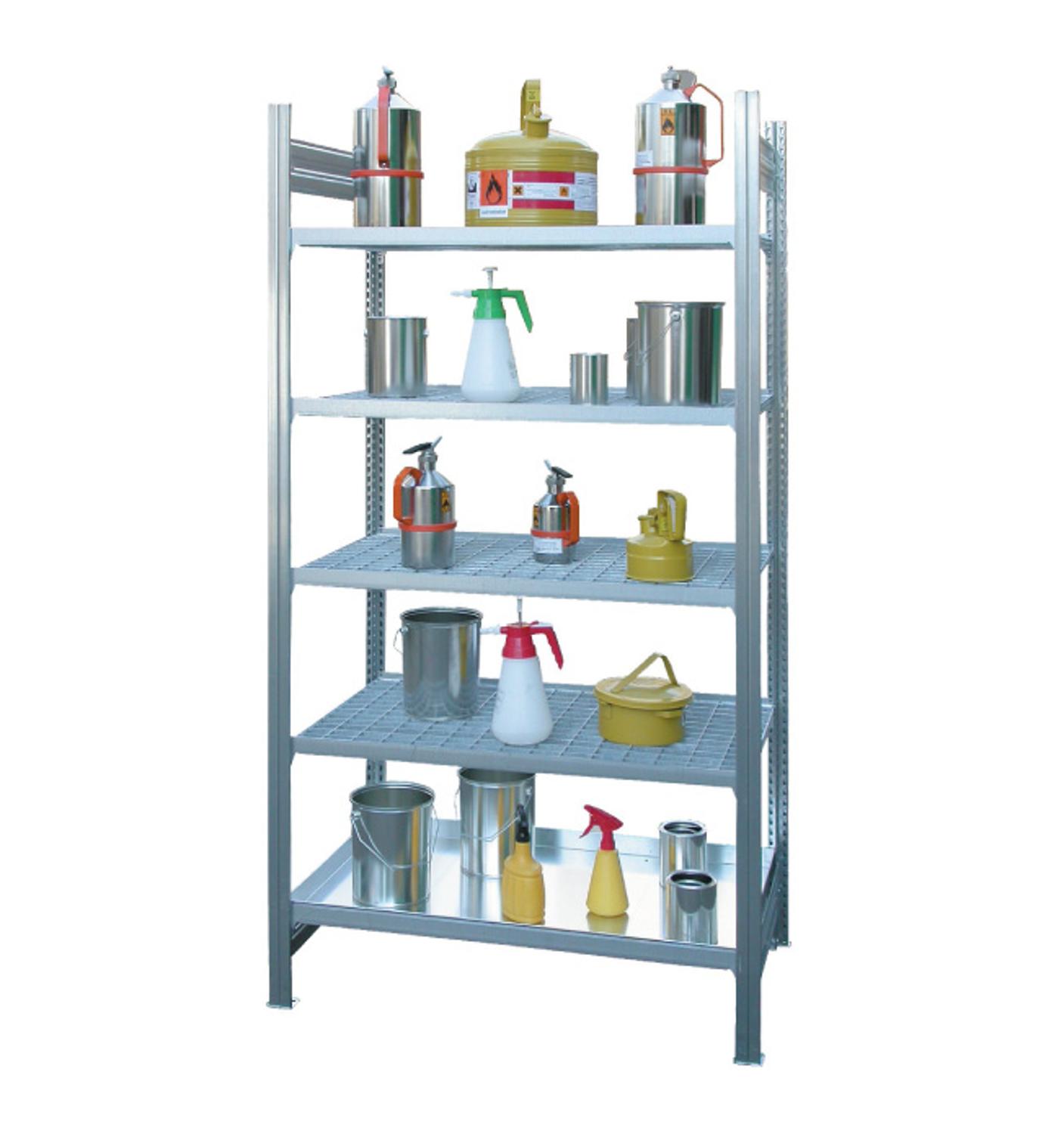 bord is 200 kg bij een gelijkmatig verdeelde last. De levering van de basisstelling bestaat uit; 2 staanderframes, 4 roosterlegborden en 1 opvangbak.Uitbreiding door aanbouwsegmenten