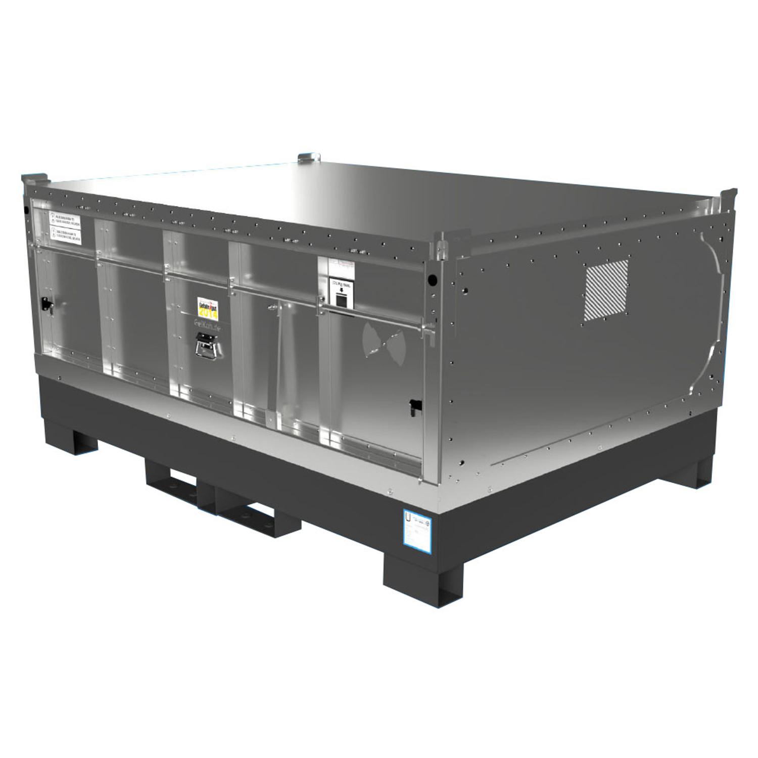 Een complete oplossing voor opslag en transport van lithium-ion batterijen. Het is een innovatieve box met een lekbak, brandveilige binnenverpakking, branddetectie en een blussysteem dat zowel een brand blust als tegelijkertijd de uitlaatgassen van openbarstende accu's behandelt. In combinatie met de Bumax service krijg je een echt complete oplossing.