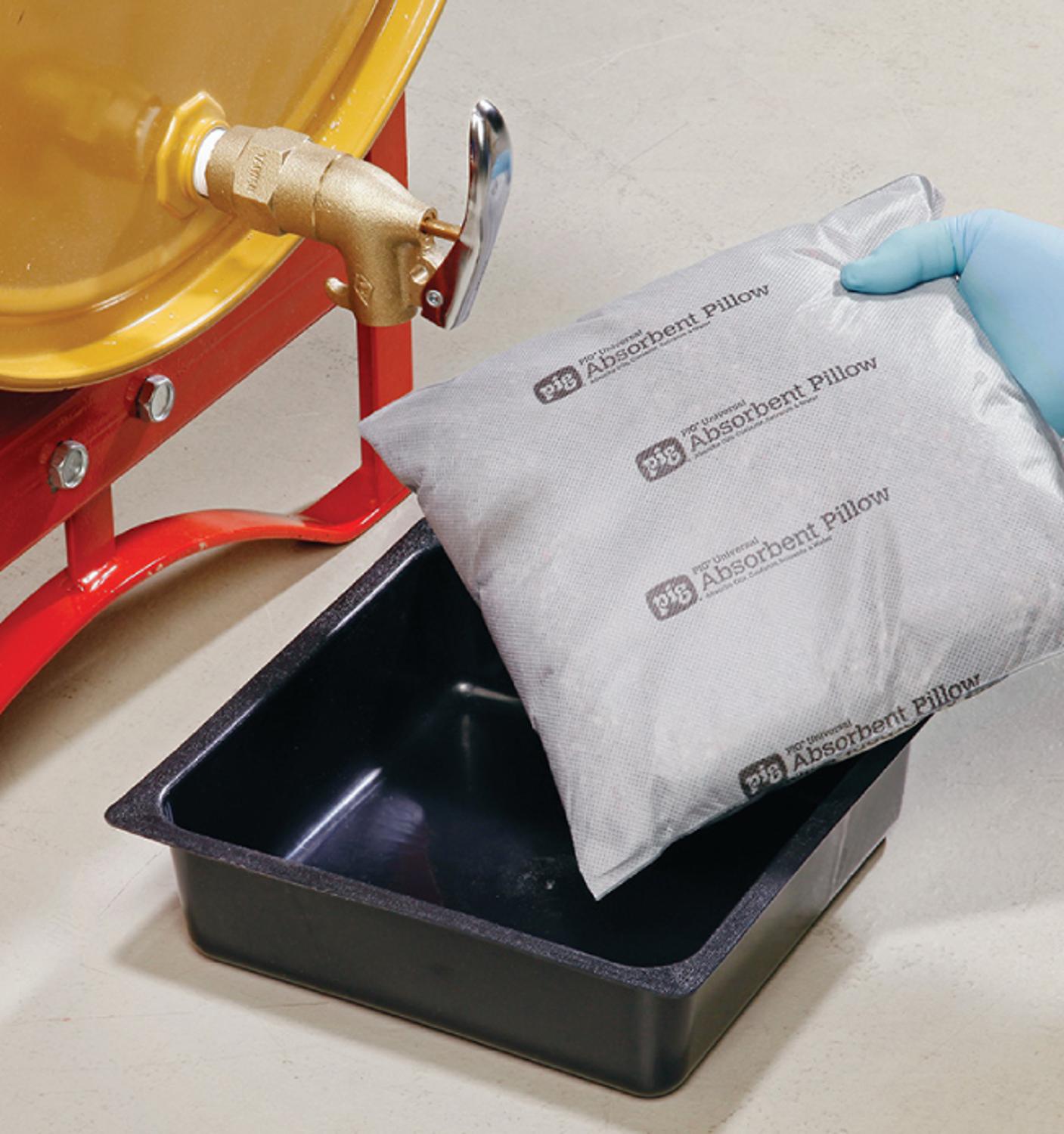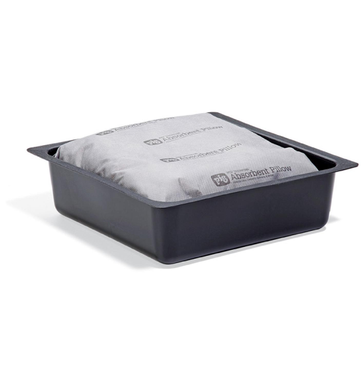 Gebruik deze kussen/pan combinatie om de afvoer van een volledig verzadigd kussen van de werkvloer te houden. Voeg nog meer absorptievermogen toe bij bestrijding van lekkages en spillages van oliën, koelvloeistoffen, oplosmiddelen en water. Universele absorptiekussens hebben een groot oppervlak, grote capaciteit en snel absorberende vulling, zodat gelekte vloeistoffen snel opgezogen worden. Maakt het opruimen snel en gemakkelijk op de werkvloer.