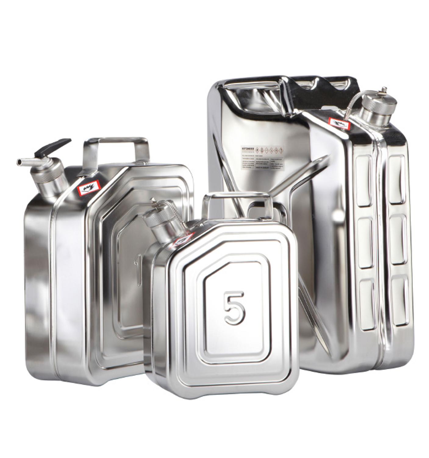 Veiligheids jerrycans van hoogwaardig en chemisch bestendig RVS 1.4404 (316) met een dikte van 0,8 mm, handgreep van de jerrycan is ook van massief RVS. De jerrycans hebben een gepolijse afwerking. Gebruik de jerrycans voor het veilige opslaan, vullen en doseren van brandbare vloeistoffen. Jerrycan vorm bespaart ruimte in veiligheidskasten, laboratorium kasten en opslagniveau's - in het bijzonder in vergelijking met flessen (bijv. van glas).