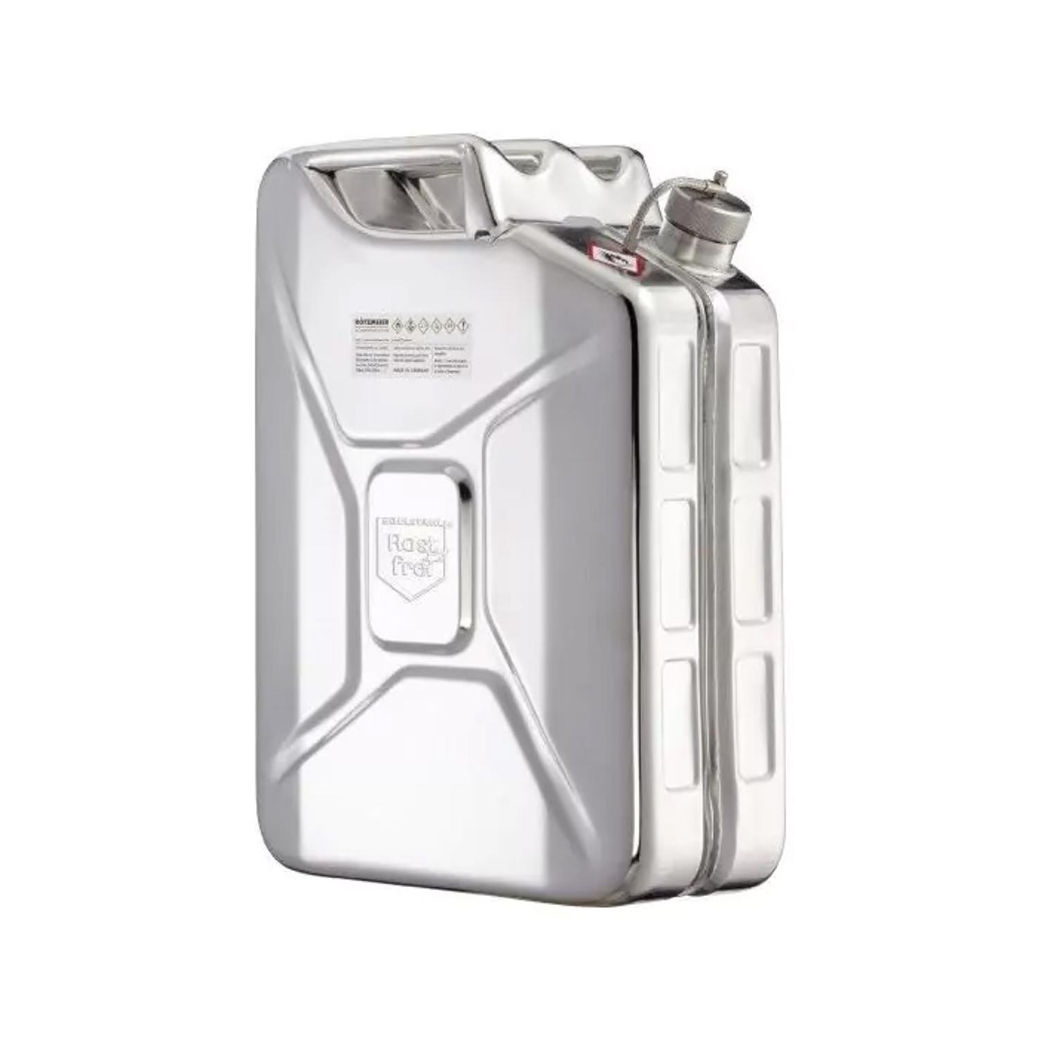 Veiligheids jerrycans van hoogwaardig en chemisch bestendig RVS 1.4404 (316) met een dikte van 0,8 mm, handgreep van de jerrycan is ook van massief RVS. De jerrycans hebben een gepolijse afwerking. Gebruik de jerrycans voor het veilige opslaan, vullen en doseren van brandbare vloeistoffen. Jerrycan vorm bespaart ruimte in veiligheidskasten, laboratorium kasten en opslagniveau's - in het bijzonder in vergelijking met flessen (bijv. van glas).