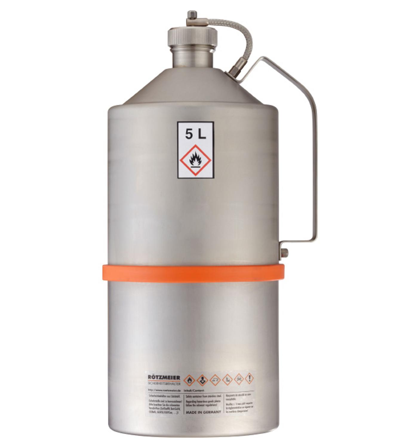 Veiligheids transportkannen van hoogwaardig en chemisch bestendig RVS 1.4404 (316) met een dikte van 0,6 mm. Ontwerp goedgekeurd door het Federaal Instituut voor Materiaalonderzoek en Testen van Duitsland (BAM) voor UN-transport van alle soorten gevaarlijke goederen (verpakkingsgroep X) volgens ADR, RID, IMDG Code, GGVSEB en GGVSee. Gebruik de transportkan voor het veilig vervoeren van brandbare vloeistoffen.